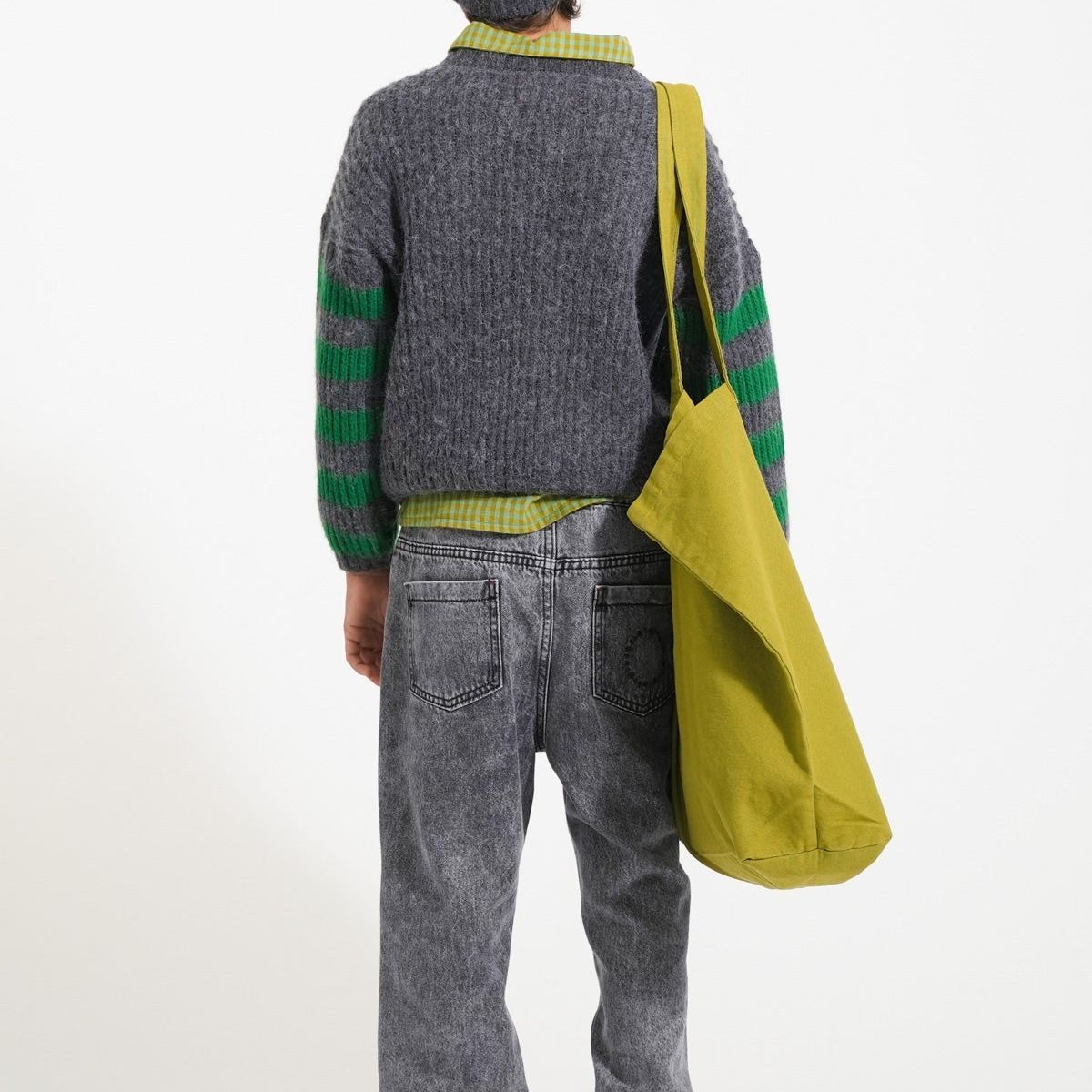 Piupiuchick Knitted Sweater Grey & Green Stripes