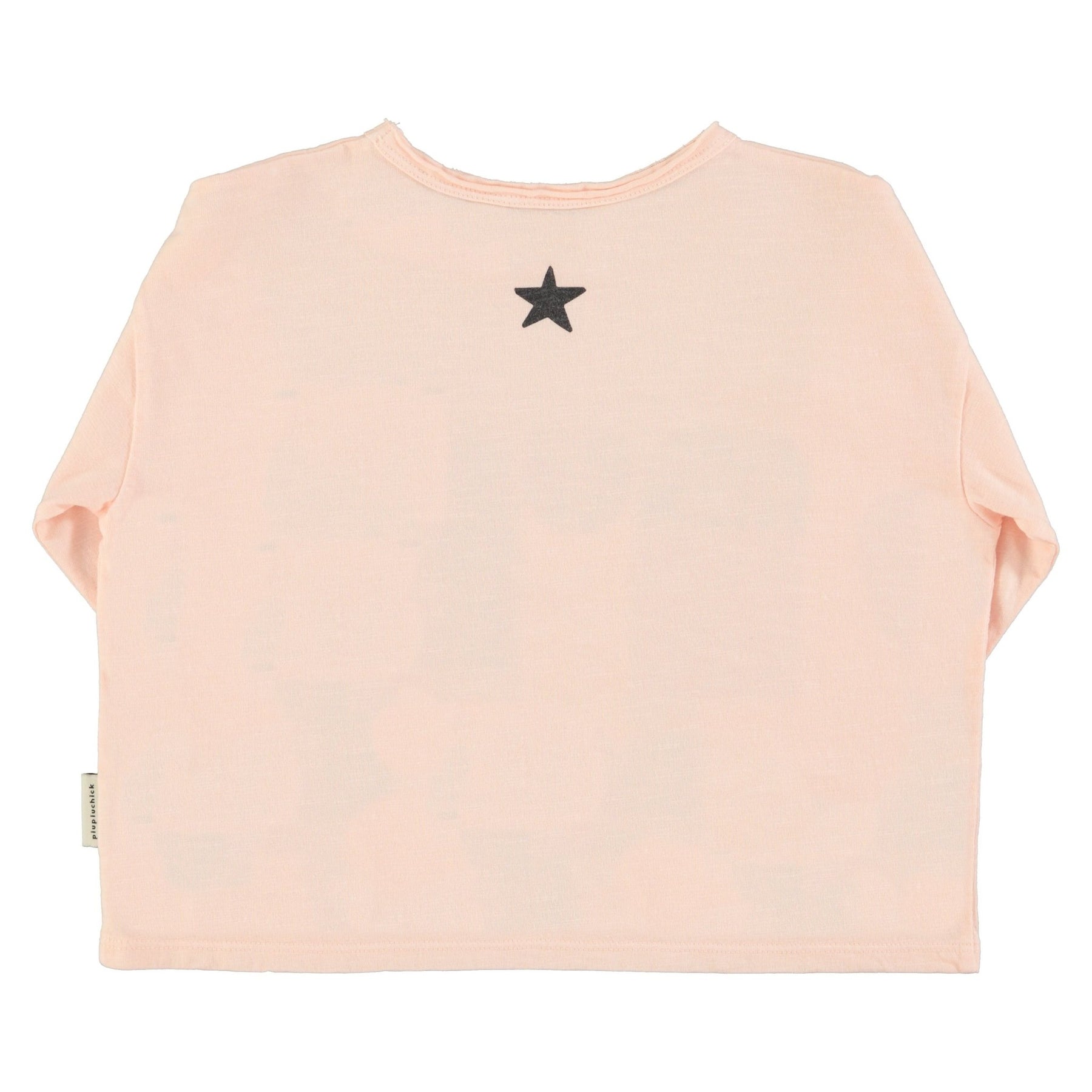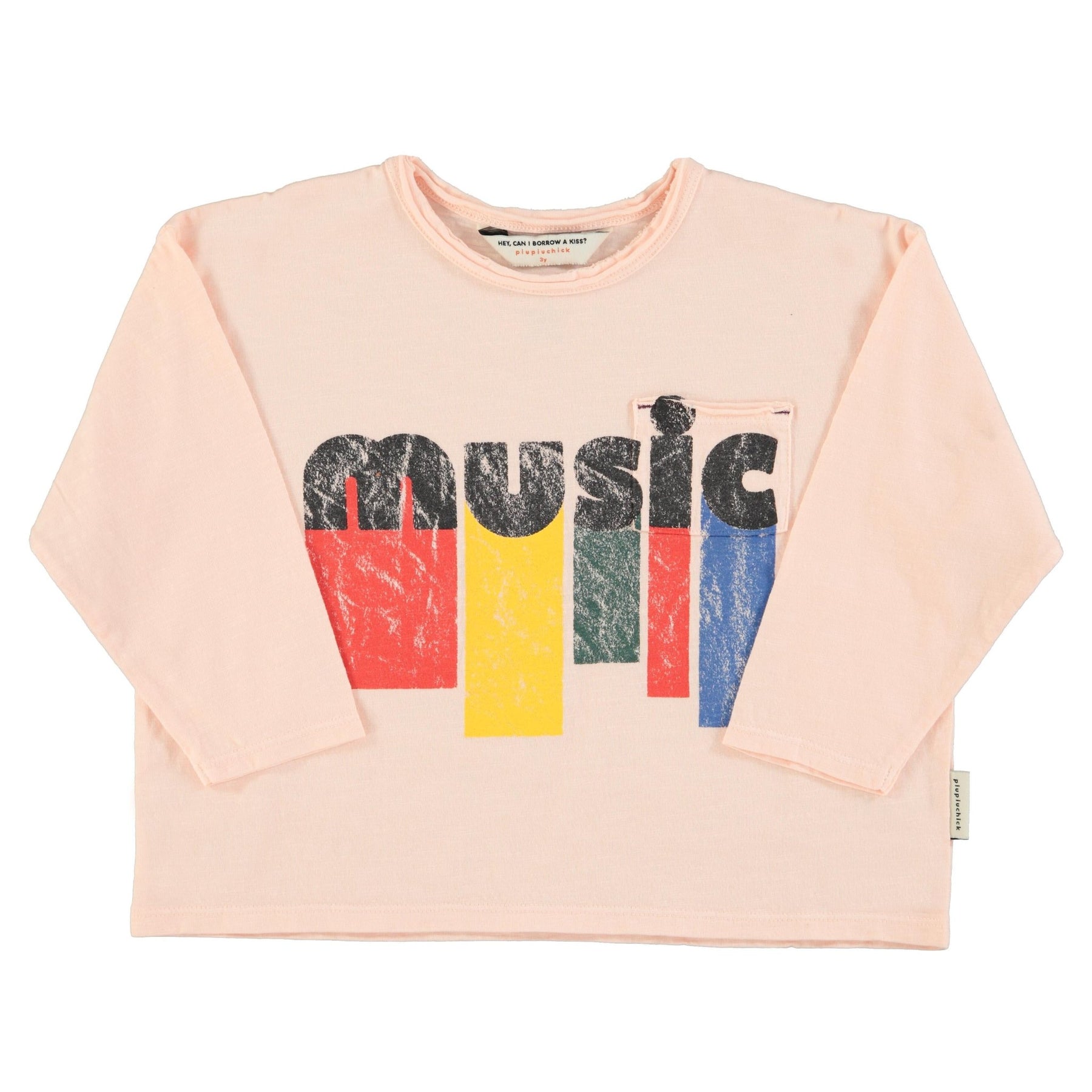 Lange mouw met ronde kraag met onafgewerkte rand en zakje op de borst. Gedetailleerd met veelkleurige “muziek”-opdruk en een kleine zwarte logoster op de rug. Knopen op schouder voor babymaten.