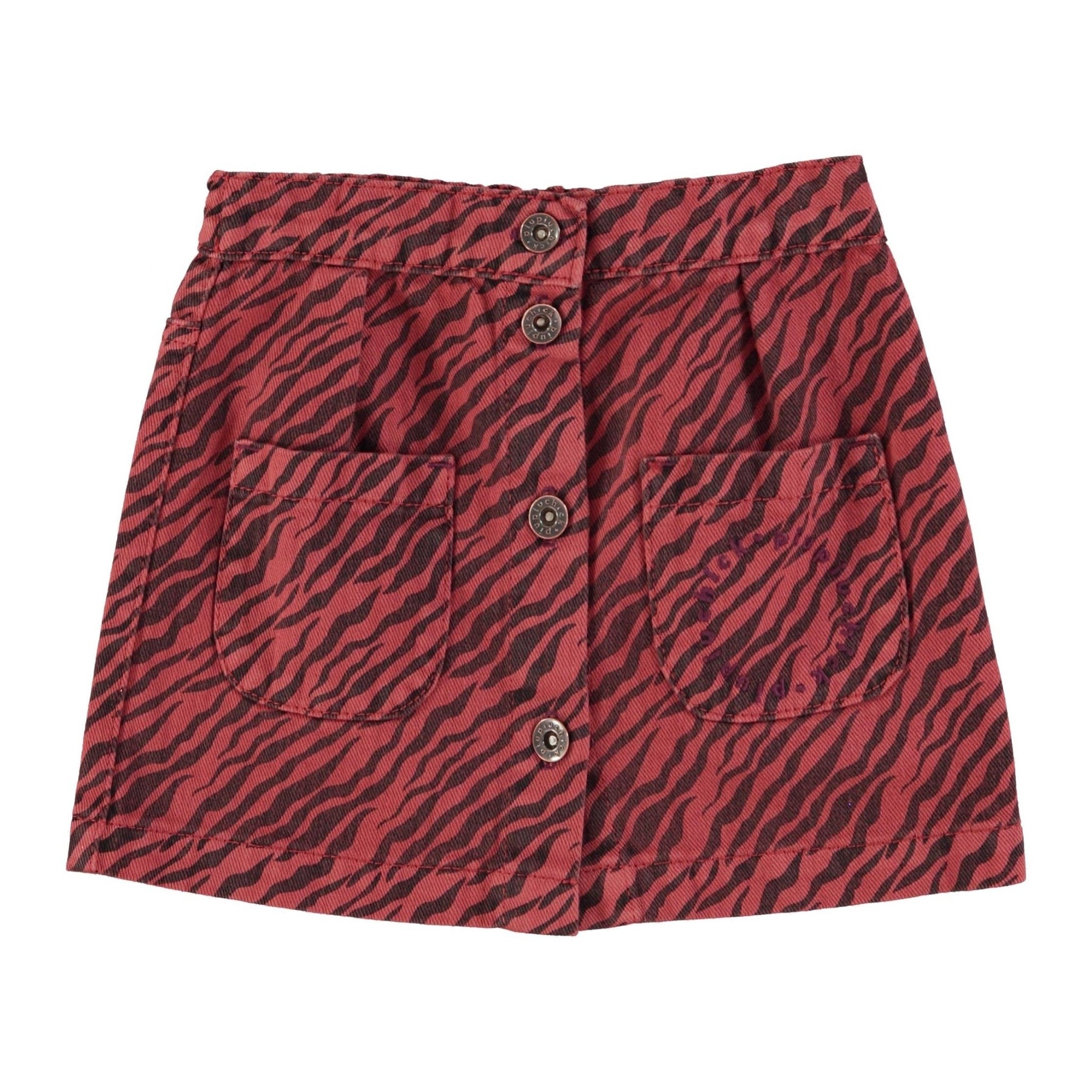 Korte rok met knopen aan de voorkant. Opgestikte zakken met geborduurd bordeaux logo. Elastische en verstelbare taille.