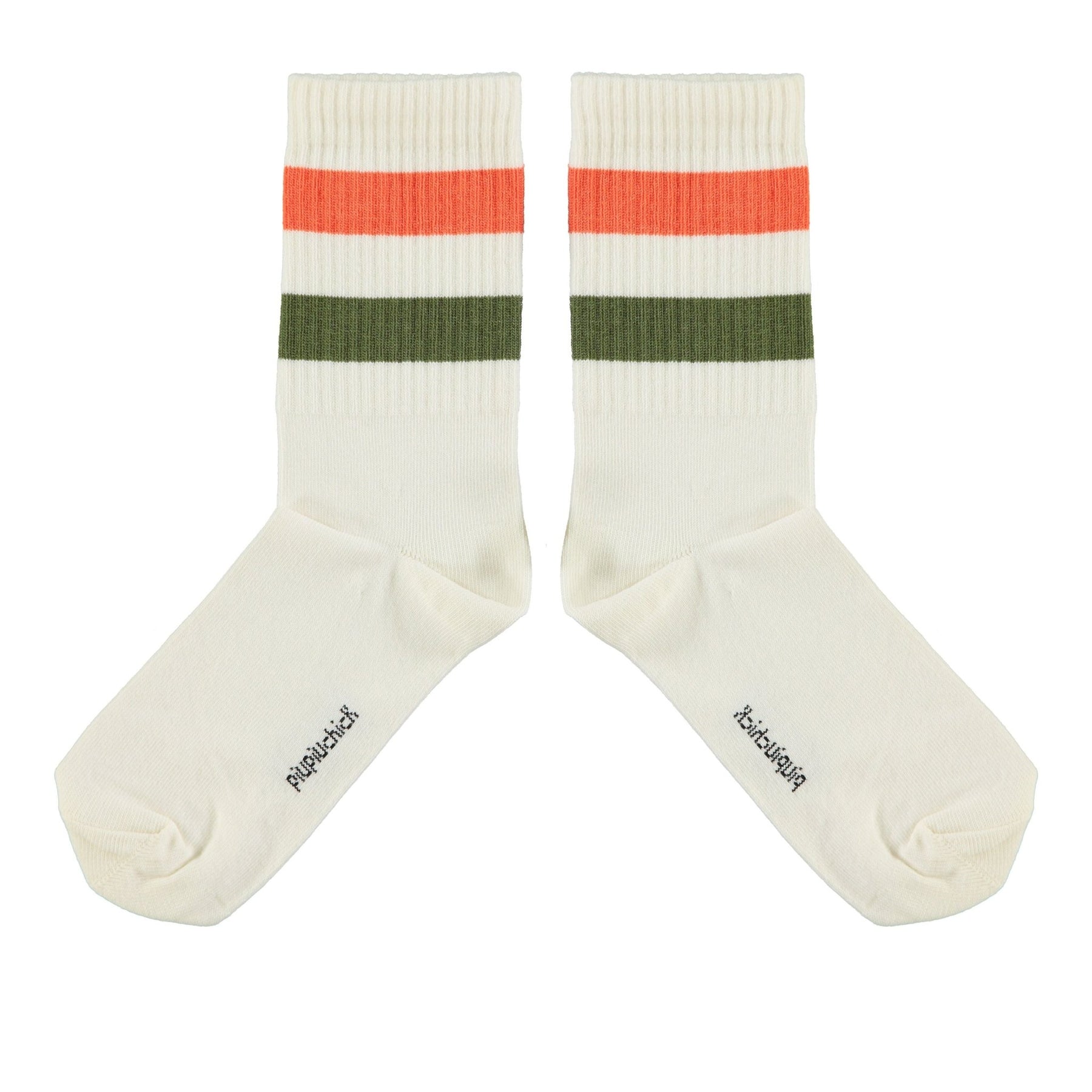 Piupiuchick Socks Ecru With Green & Orange Stripes