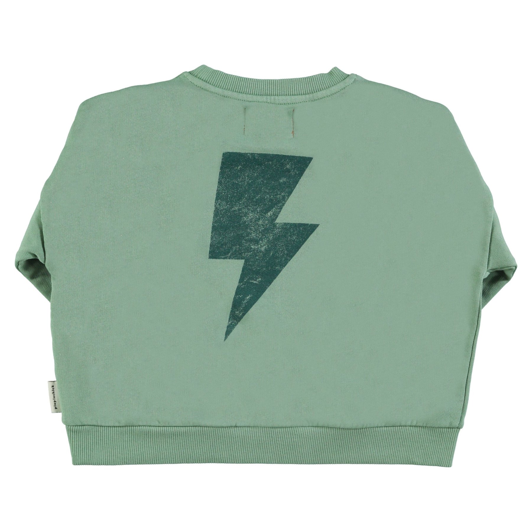 Unisex sweatshirt met voor- en achterprints. Details naden. Gekaard organisch katoenen fleece. Geribbelde cufs. Babymaten hebben knopen op de schouders.