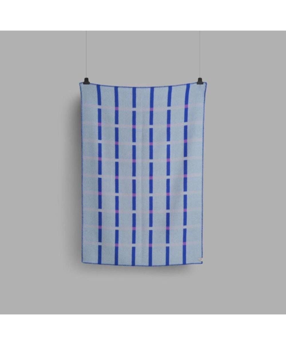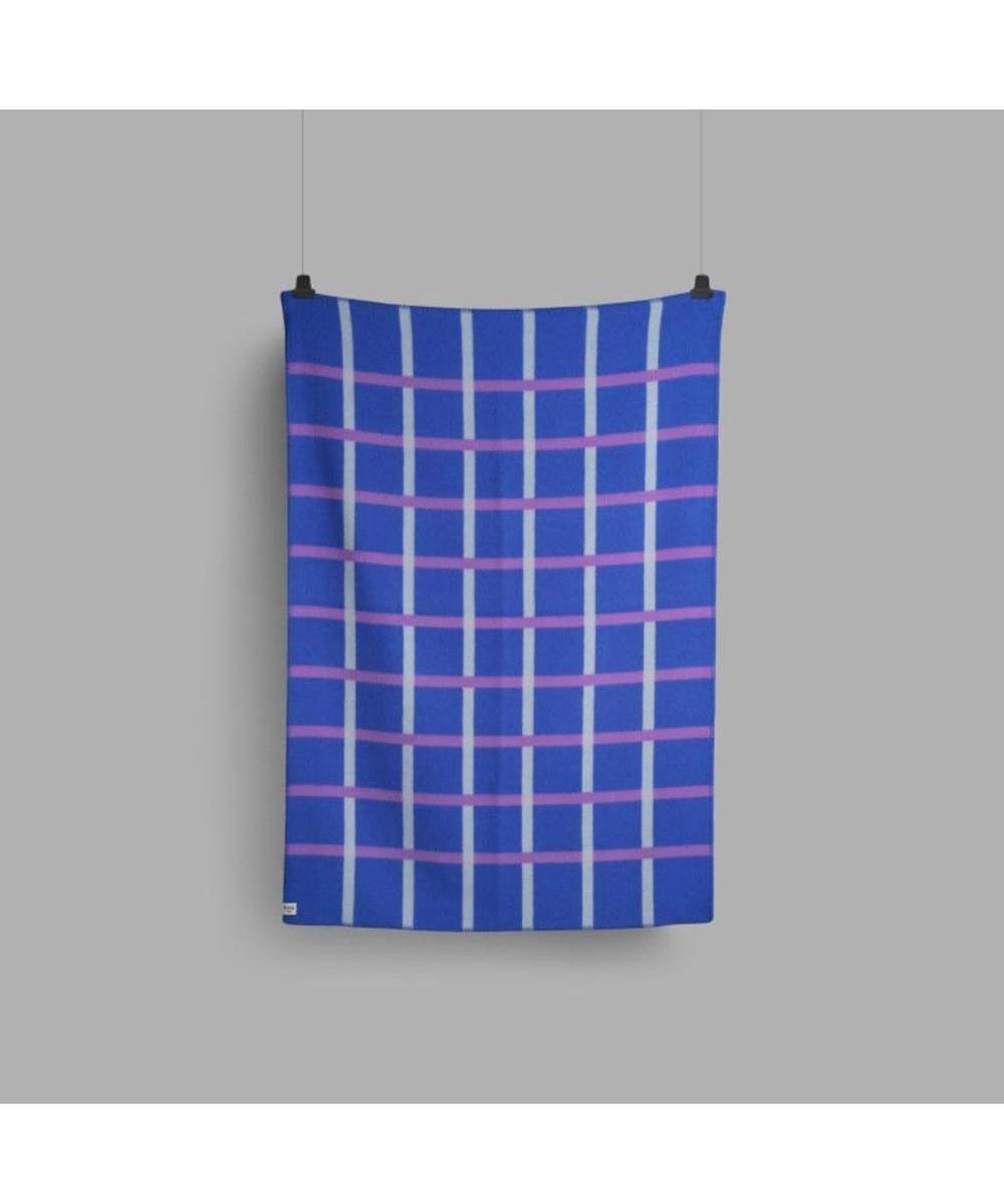 Roros Tweed plaid. De Knut-serie is geïnspireerd op het meest elementaire proces bij het weven, de eigenlijke binding van de verticale en horizontale draden. Het patroon is een strak en precies raster, getekend in verzadigde kleuren.