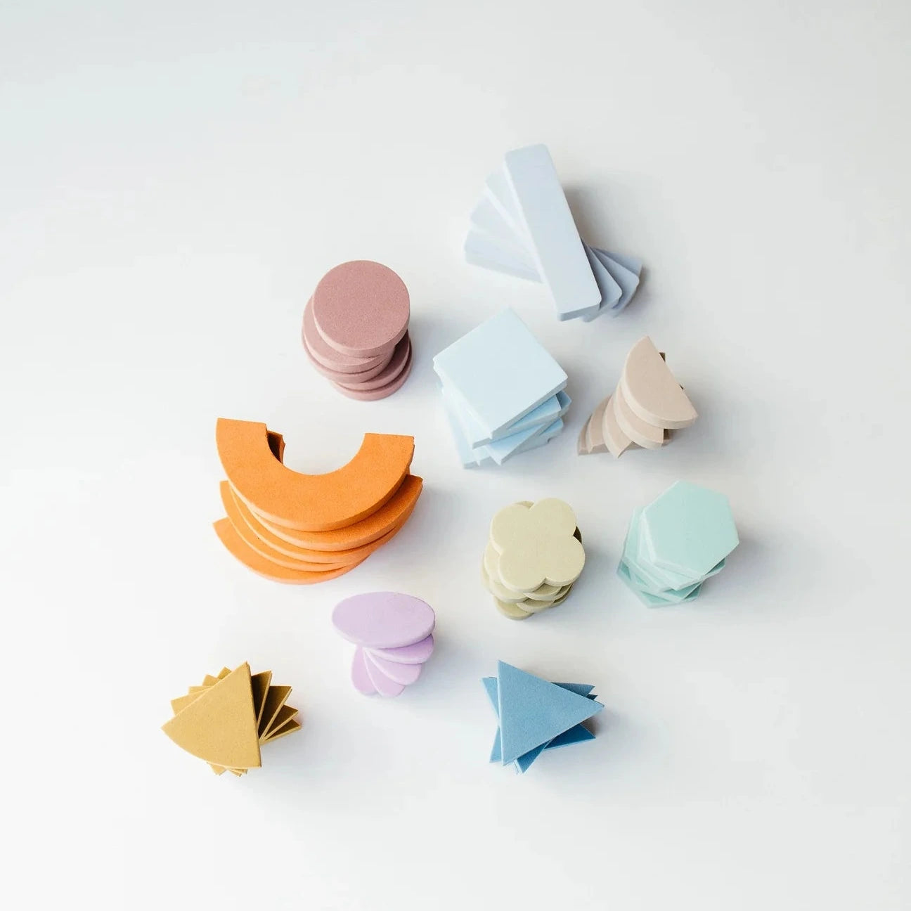 De Imagi Puzzle is een veelzijdige set van 50 stukjes, bestaande uit 10 verschillende vormen en kleuren, waarmee kinderen op creatieve wijze kunnen spelen en bouwen.