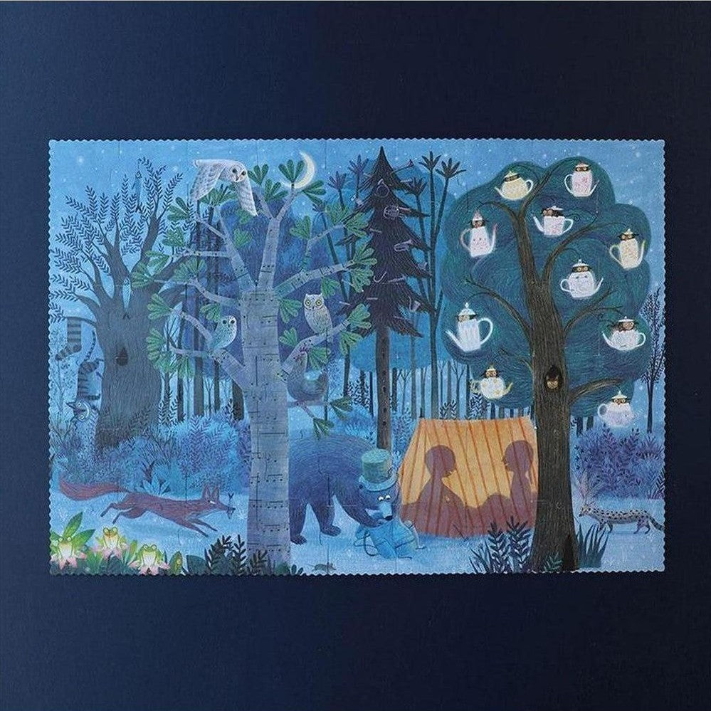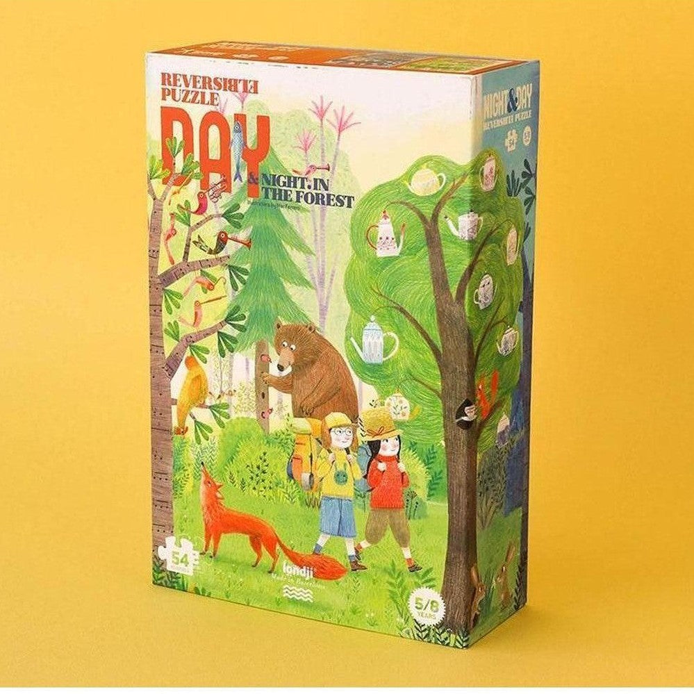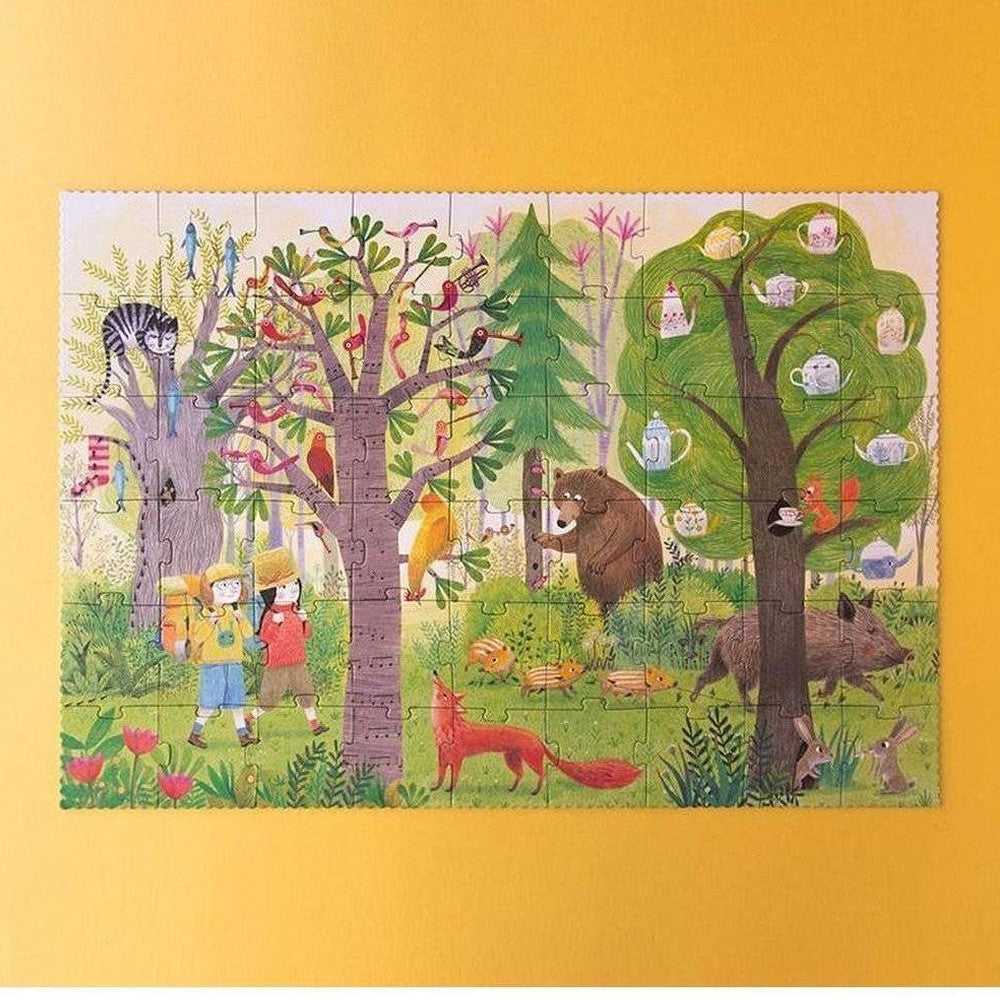 Omkeerbare puzzel van 50 stukjes met veel kleine details.