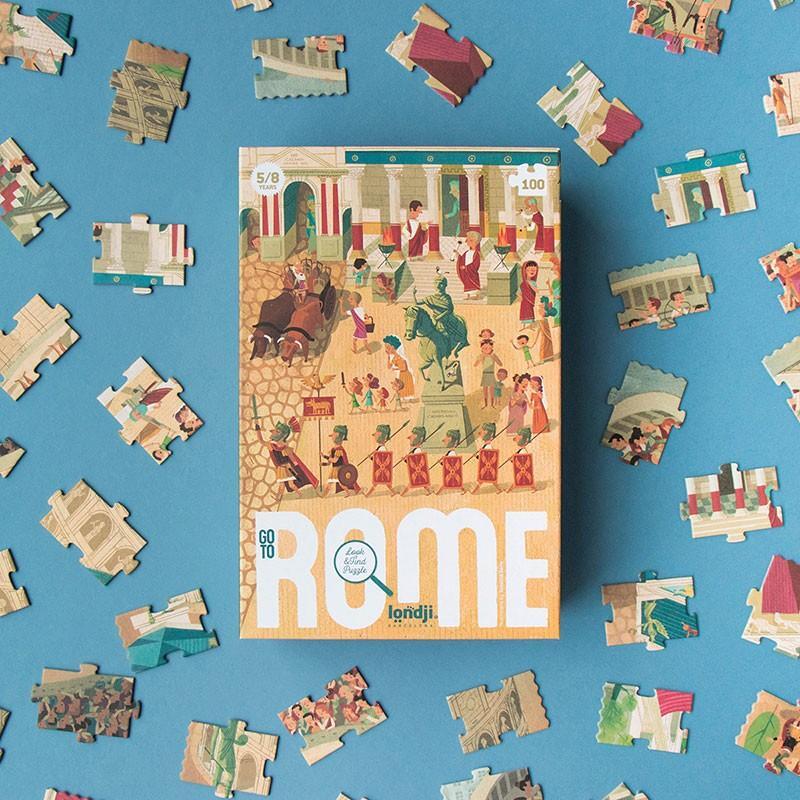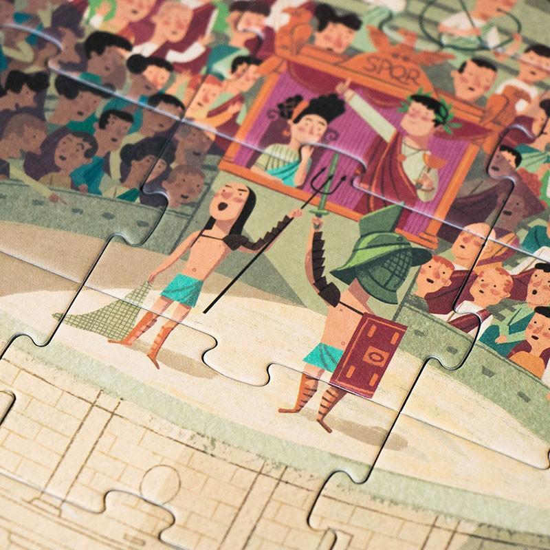 Een 100-delige puzzel die terugreist naar de tijd van het Romeinse Rijk. Gladiatoren, keizers en slaven in Rome tweeduizend jaar geleden. Educatief speelgoed.