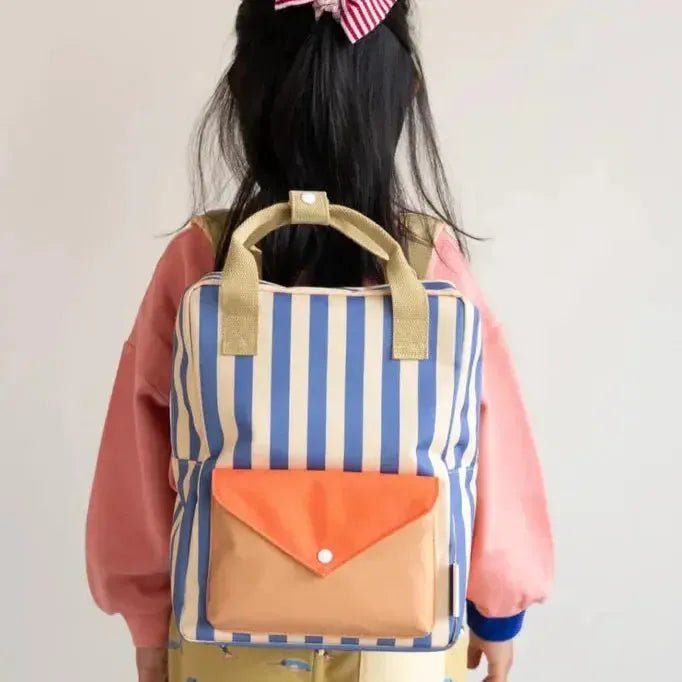Sticky Lemon backpack Medium Wonders Envelope Stripes Blue Whale / Sandy Yellow
