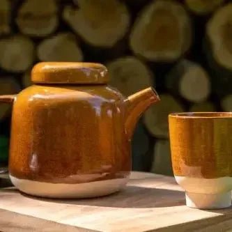 Prachtige theepot 'Berry'. Glanzend met een niet geglazuurde onderkant.