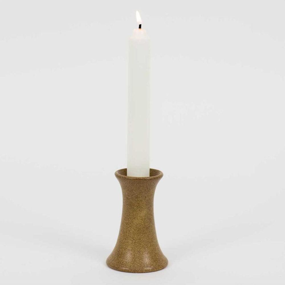 Een kleine handgemaakte kandelaar met een mooi mat oppervlak.