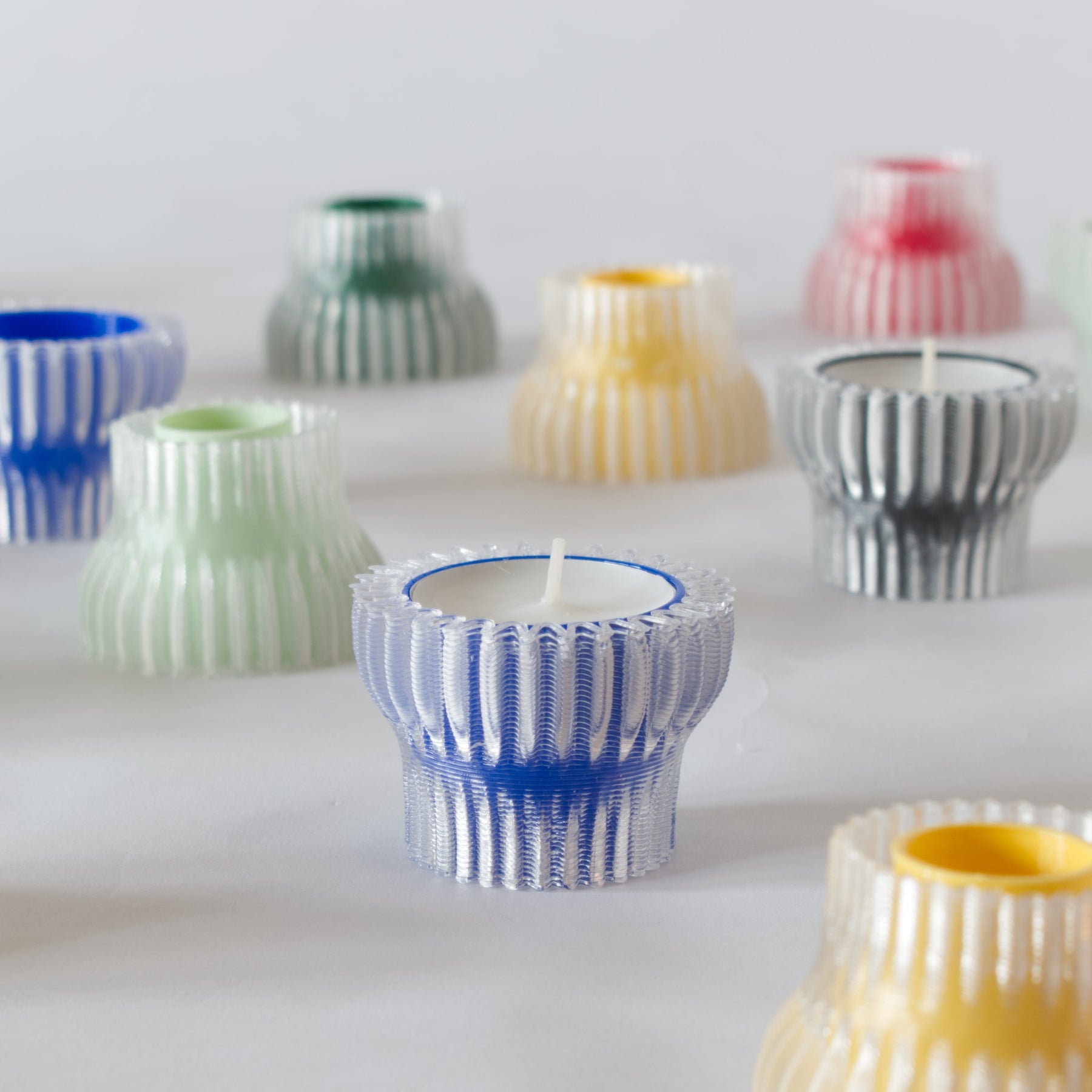 De ontwerpen van Warren & Laetitia worden volledig in 3D geprint met gerecyclede of recyclebare materialen, zoals rPLA (van voedselverpakkingen) en rPETG (van plastic flessen). Ze optimaliseren elk ontwerp voor het printproces zelf, waardoor minimale verspilling ontstaat en elke vorm functioneel én bewust ontworpen is.