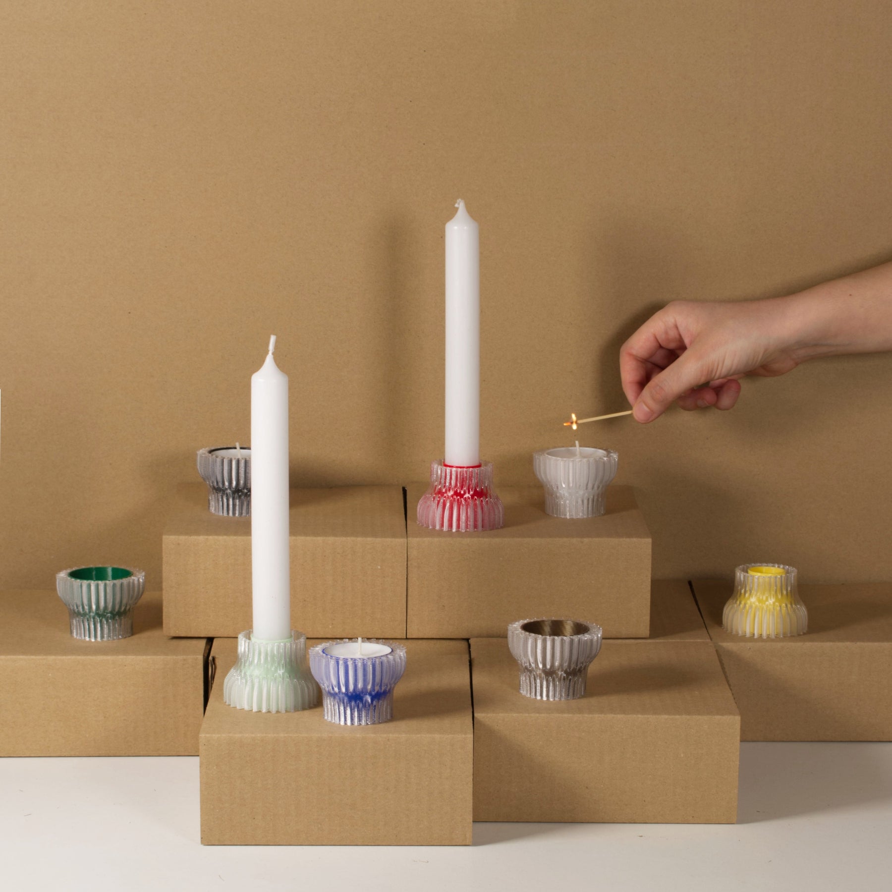 2.20 is een dubbele kaarsenhouder die, afhankelijk van de kant waarop u hem plaatst, zowel een waxinelichtje als een kaarsje kan bevatten.