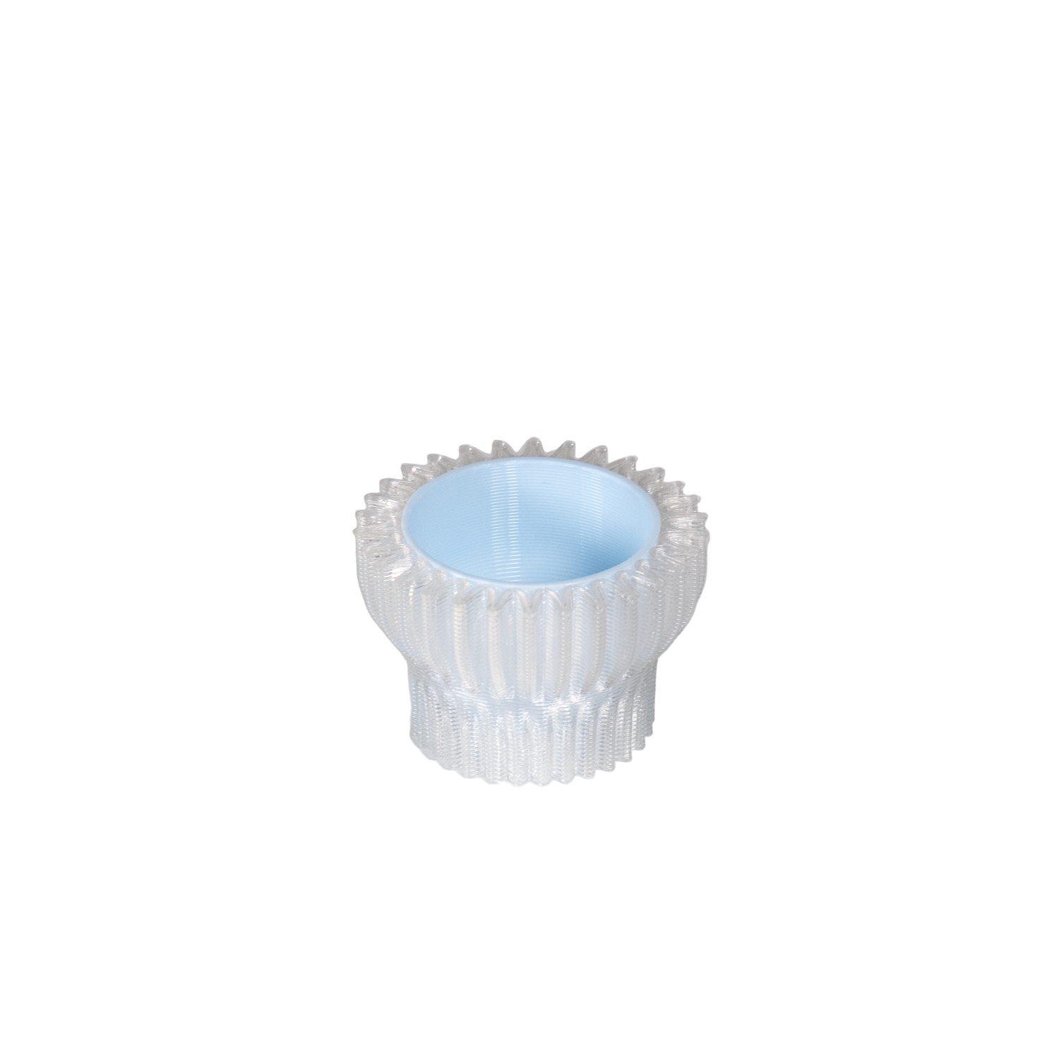 De ontwerpen van Warren & Laetitia worden volledig in 3D geprint met gerecyclede of recyclebare materialen, zoals rPLA (van voedselverpakkingen) en rPETG (van plastic flessen). Ze optimaliseren elk ontwerp voor het printproces zelf, waardoor minimale verspilling ontstaat en elke vorm functioneel én bewust ontworpen is.