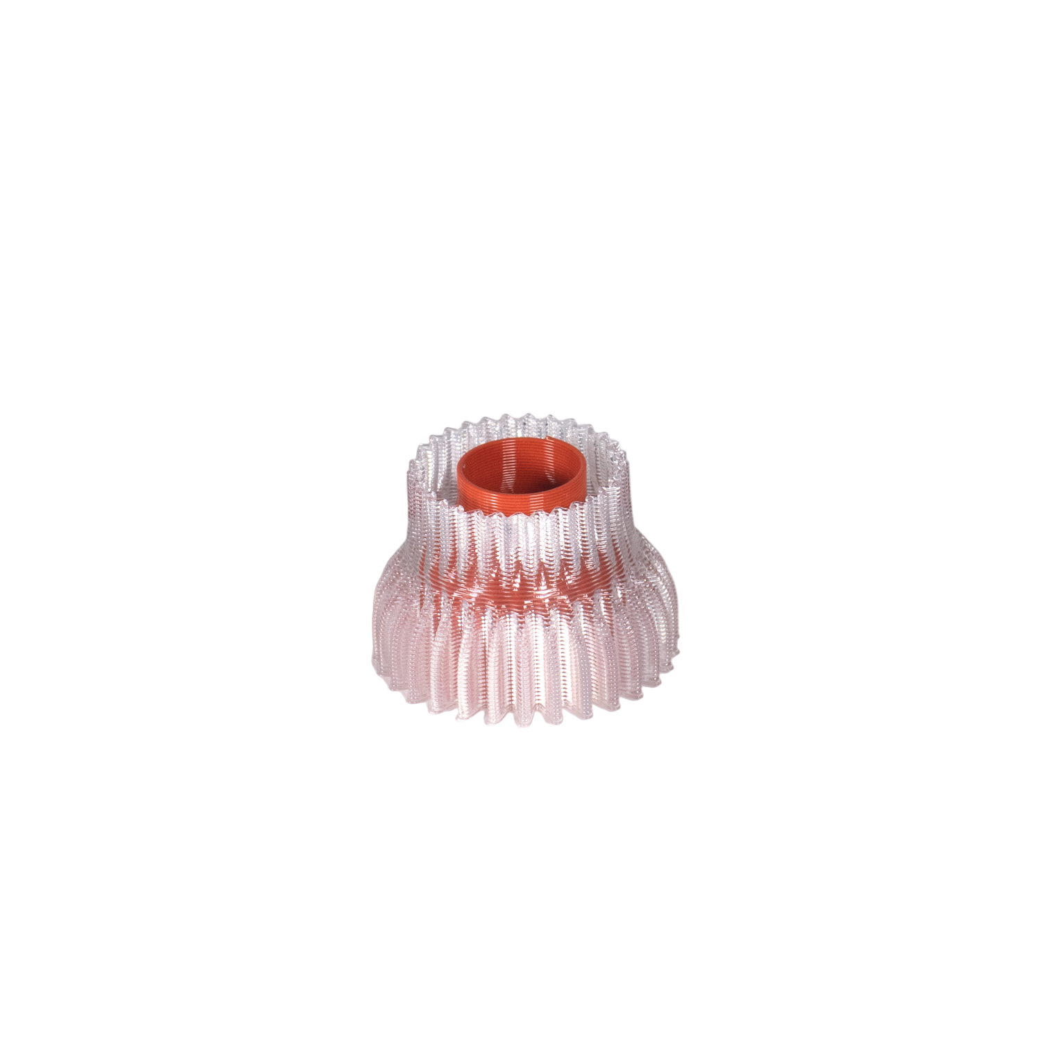 De ontwerpen van Warren & Laetitia worden volledig in 3D geprint met gerecyclede of recyclebare materialen, zoals rPLA (van voedselverpakkingen) en rPETG (van plastic flessen). Ze optimaliseren elk ontwerp voor het printproces zelf, waardoor minimale verspilling ontstaat en elke vorm functioneel én bewust ontworpen is.