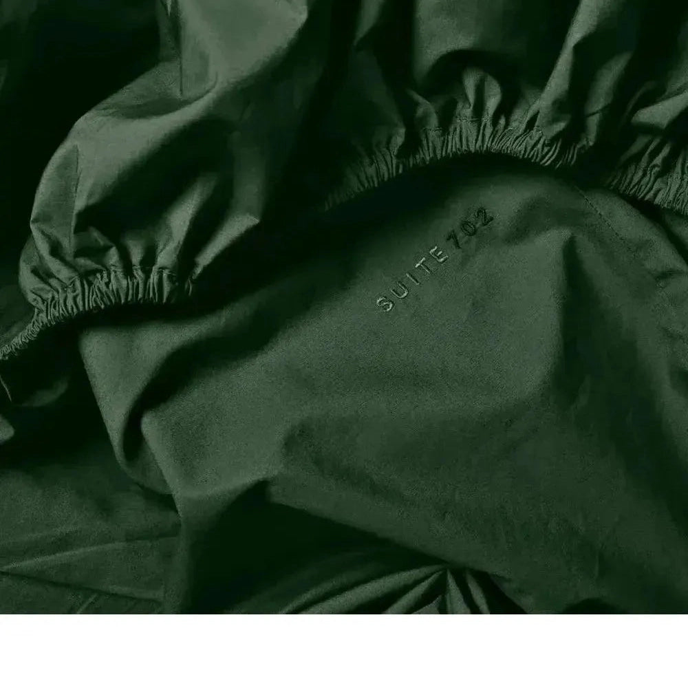 Het Suite702 hoeslaken in Forest Green brengt rust en elegantie in de slaapkamer. Deze diepe groentint ademt natuur en combineert prachtig met zowel neutrale als kleurrijke beddengoedsets. Gemaakt van 100% biologisch percale katoen met een draaddichtheid van 300 TC: crispy, ademend en duurzaam. Dankzij het elastiek rondom en de 30 cm hoge rand blijft het hoeslaken mooi strak zitten – zelfs bij matrassen met een topper tot 25 cm.