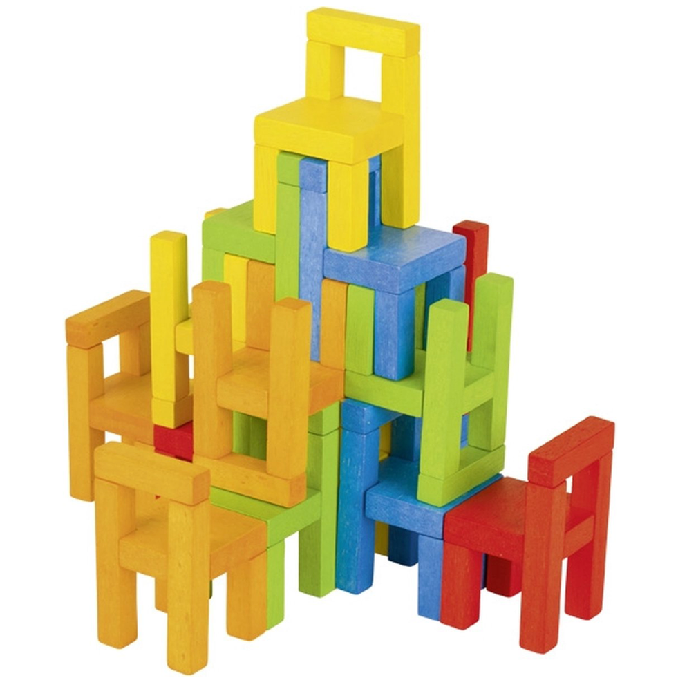 Dit spel stimuleert je kinds's motoriek. De aantrekkelijke kleuren garanderen je uren speelplezier. Stapel 24 stoelen zonder dat de stapel valt. Plaats de stoelen tactisch en kom zo hoog mogelijk!