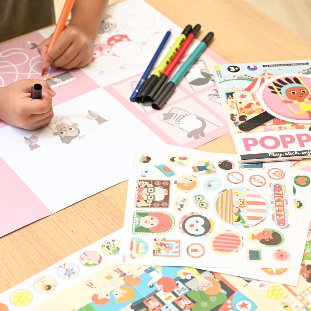 Met de Poppik Playing Posters – Funfair hebben kinderen urenlang plezier terwijl ze concentratie, kleurenherkenning en fijne motoriek oefenen – creativiteit onderweg gegarandeerd!