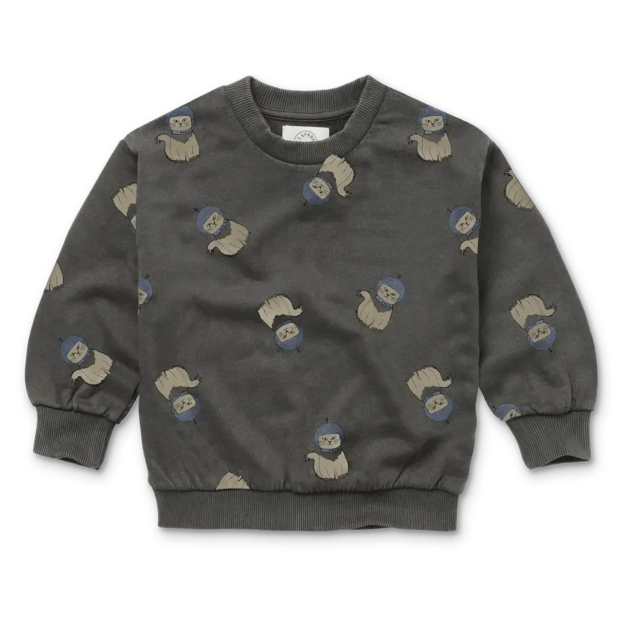 Deze sweater van Sproet & Sprout heeft een allover print bestaande uit een astronaut-poes! Zo cool!