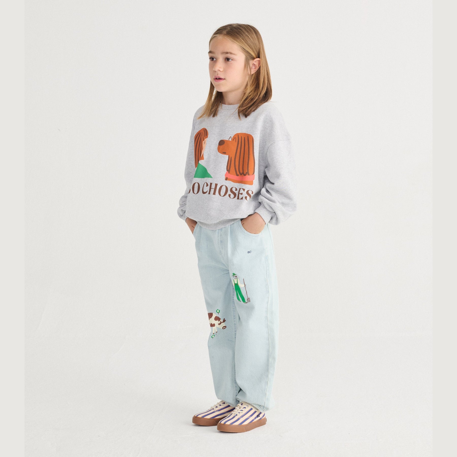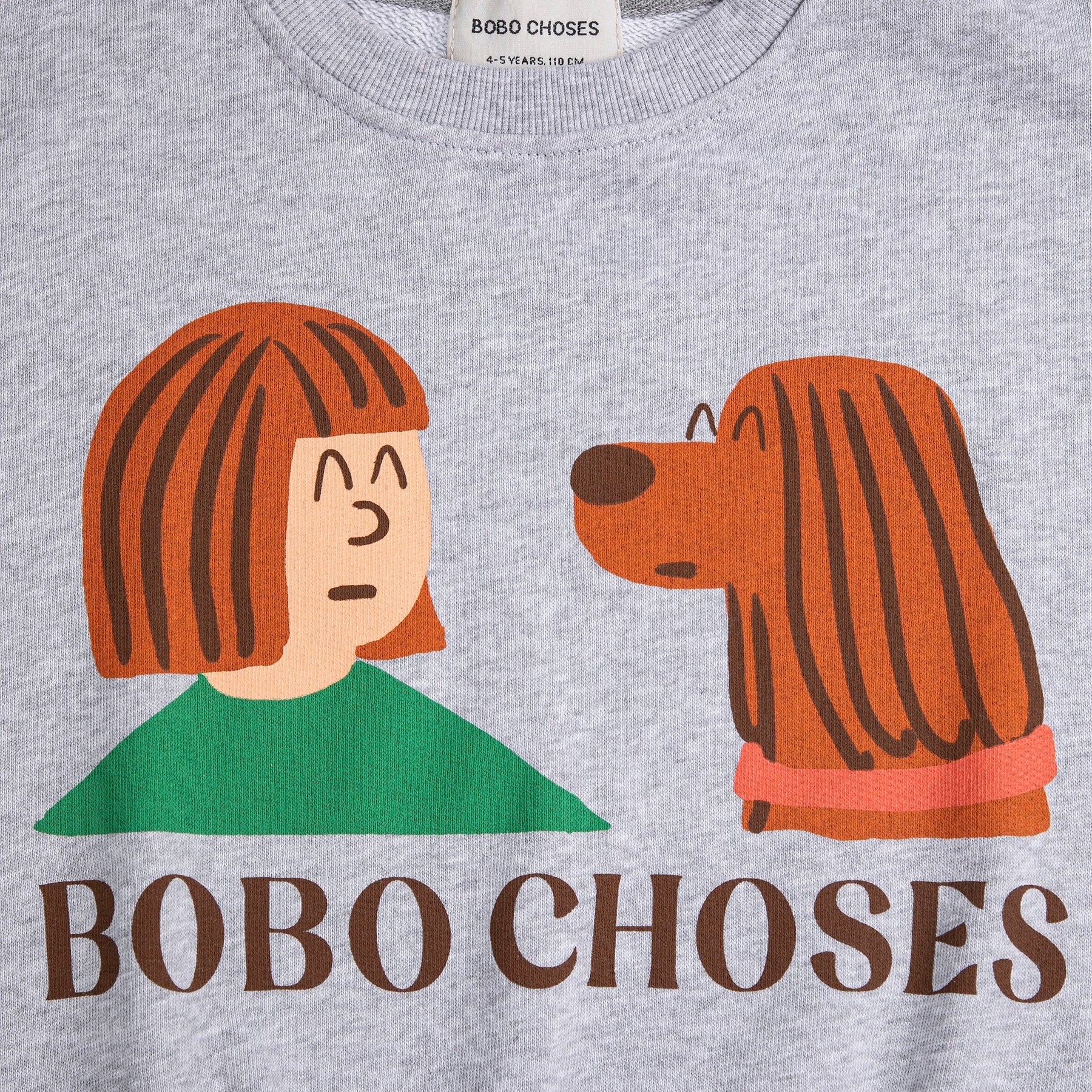 Sweater in grijs met hond en vriend op van Bobo Choses.