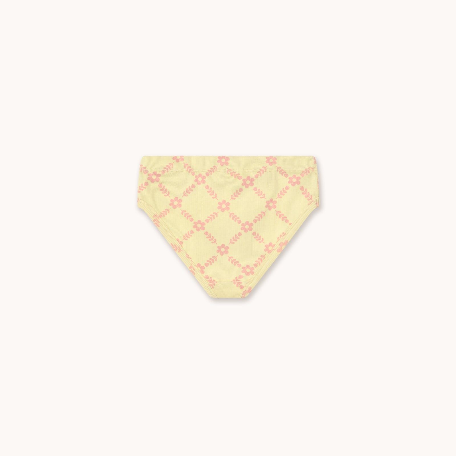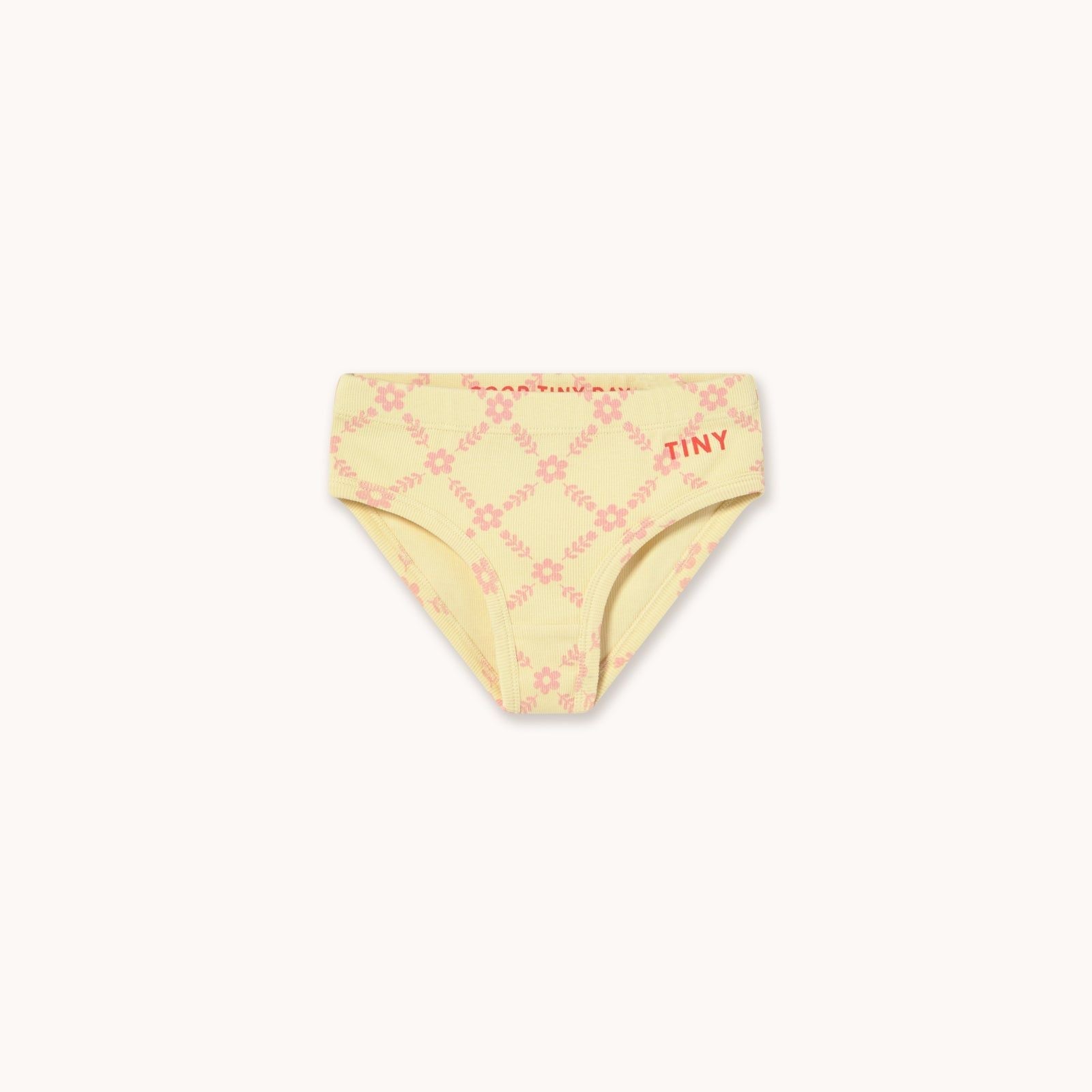 Deze onderbroek van Tiny Cottons is deel van een leuke ondergoedset! Vervolledig de set met het bijhorende topje. Het vrolijke gele onderbroekje met bloemetjes is gemaakt van organisch katoen en elastaan. Gemaakt in China.