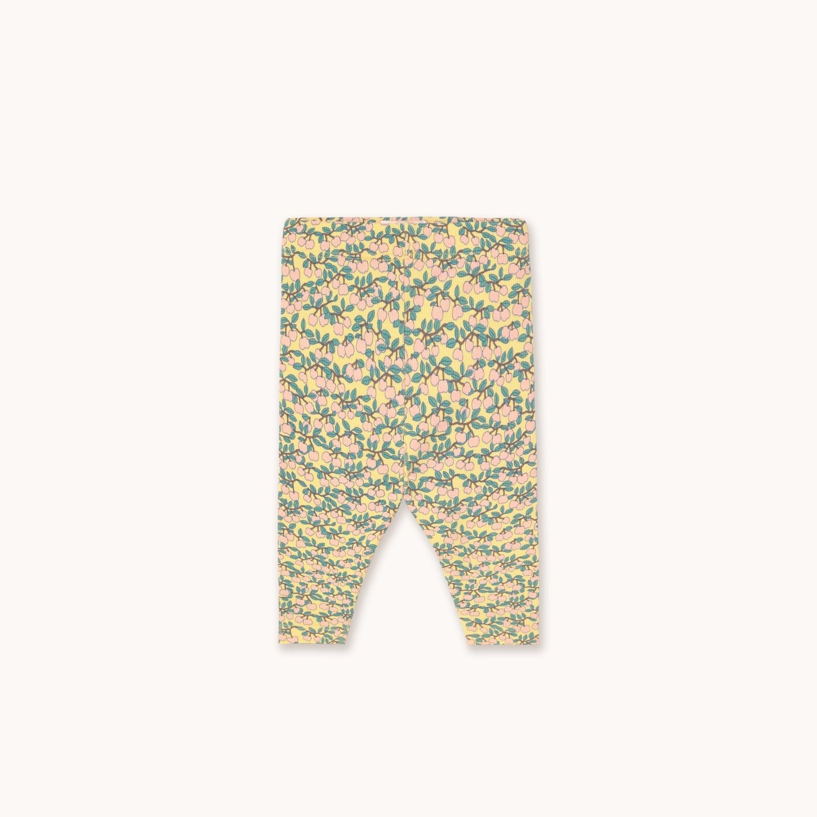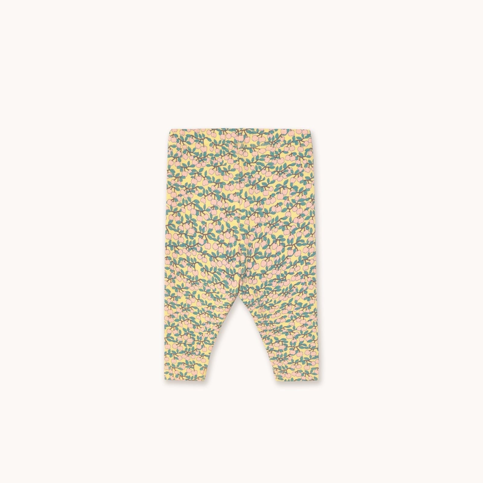 Dit broekje van Tiny Cottons is gemaakt van organisch katoen en spandex. Het broekje heeft een hele vrolijke uitstraling door de lichtgele kleur en de appeltjesprint. Gemaakt in China.
