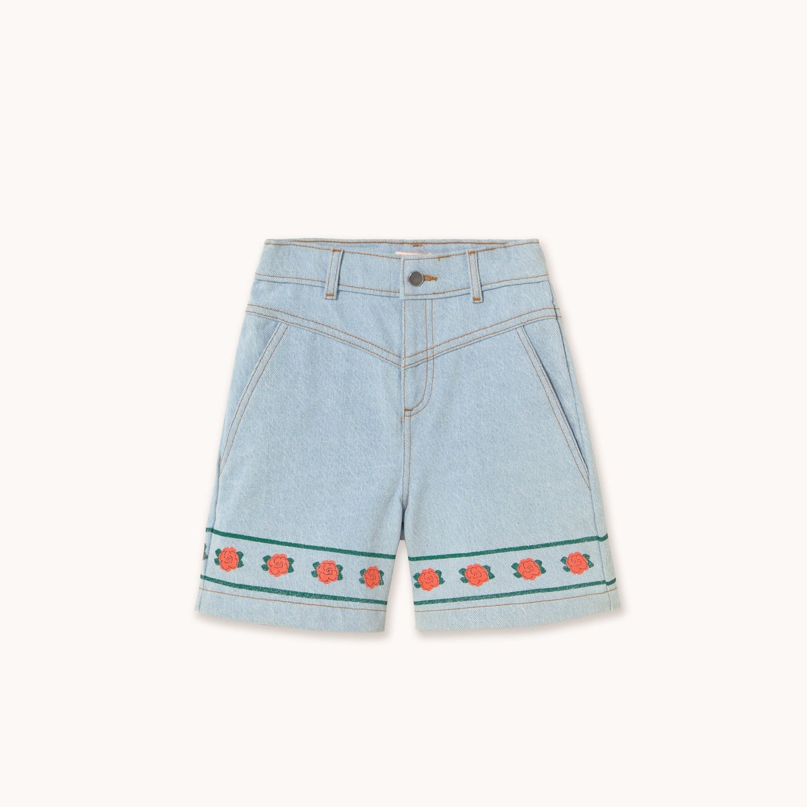 Leuke bermuda jeans met bloemen van Tiny Cottons.