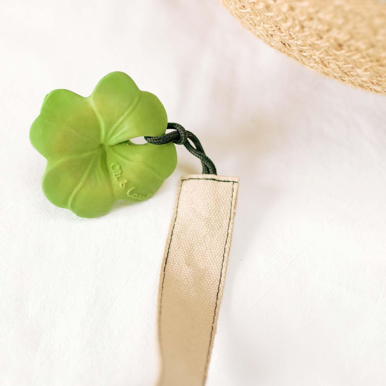 Eli the Clover is het nieuwe mini bijtkauwconcept voor baby's van Oli&Carol. Ontworpen met een ergonomische vorm waardoor hij makkelijk vast te houden en op te kauwen is. Met verschillende texturen, zoals verhoogde vlekjes of ribbels, waardoor het erg prettig is voor kleintjes om het tandvlees te kalmeren. Deze mini bijtring is gemakkelijk op te hangen aan een riempje en onderweg te kauwen... neem je kauwbehoefte mee naar boven en beneden!