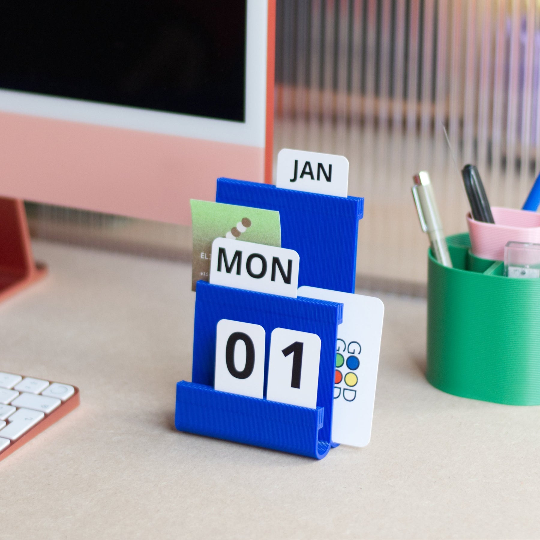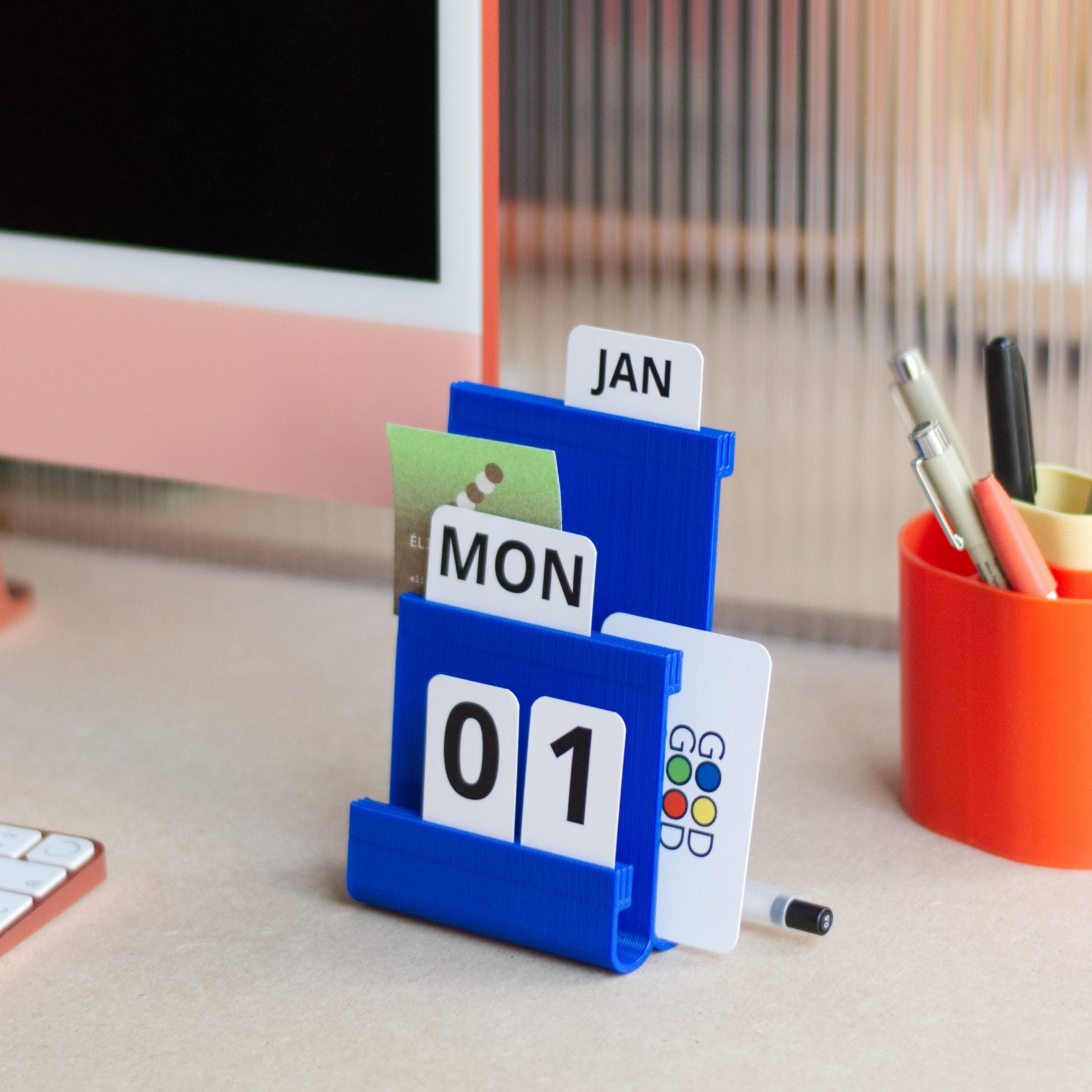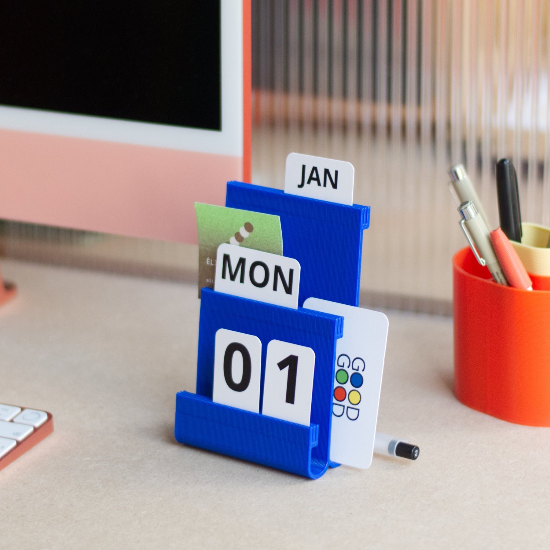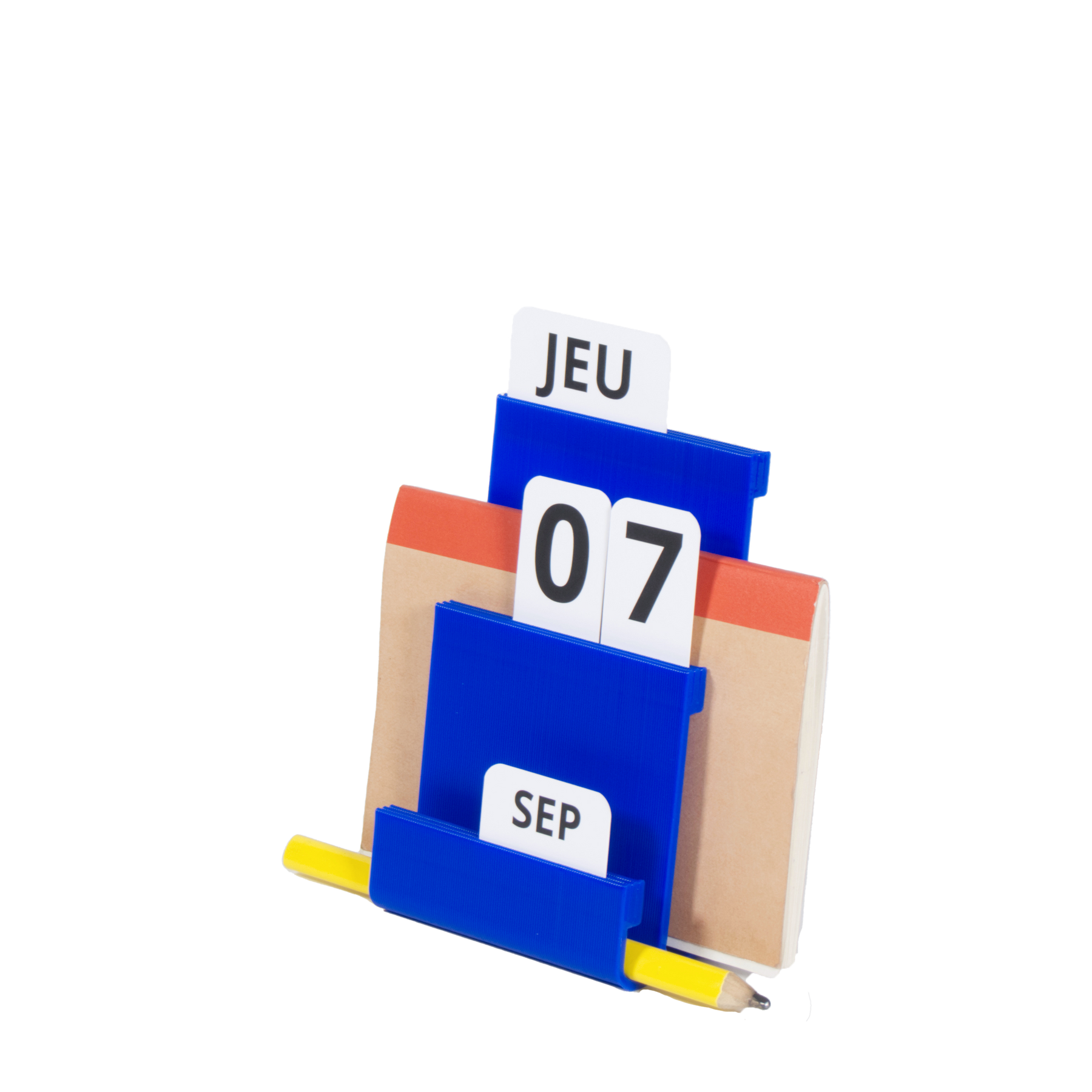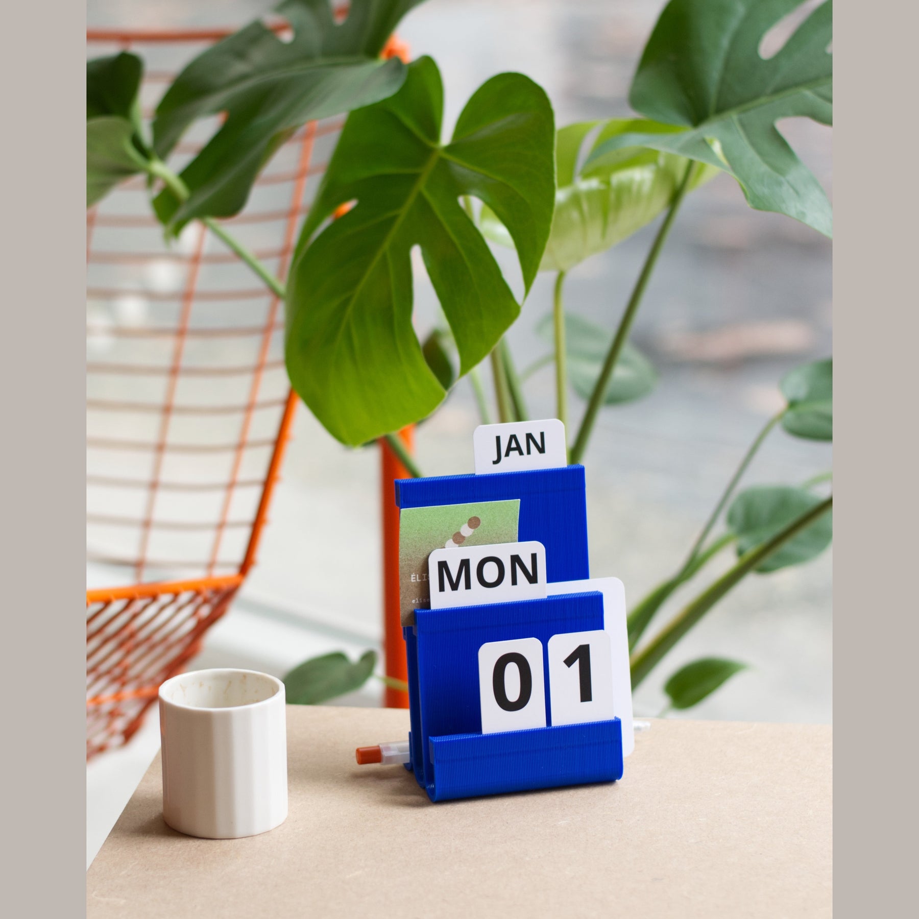 Joe is een eeuwigdurende kalender die ook gebruikt kan worden als kaart- of fotohouder. Hij wordt geleverd met een set dag-, maand- en cijferkaarten, allemaal gedrukt op karton.