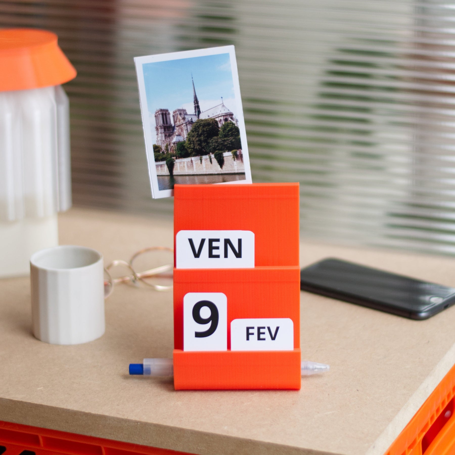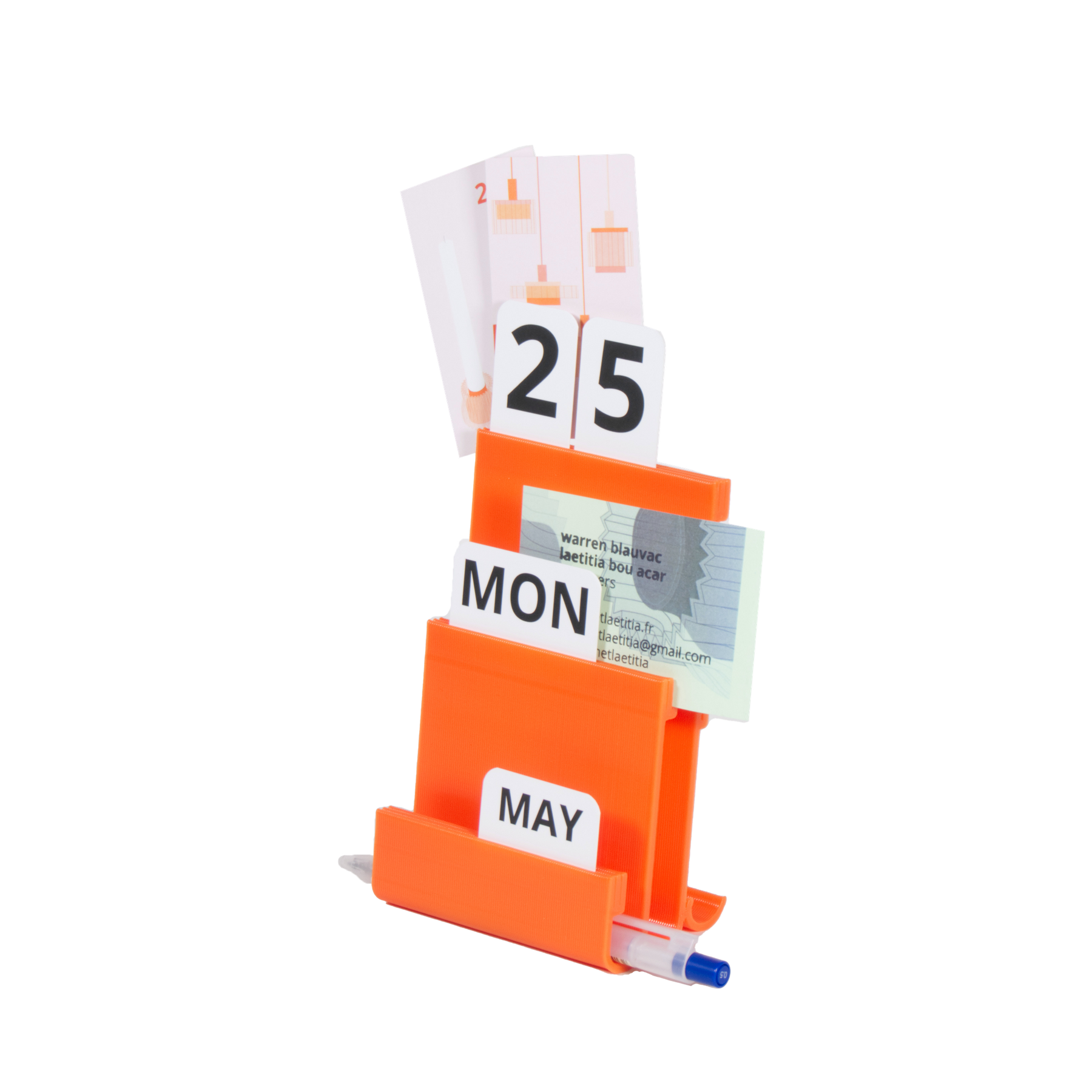 Joe is een eeuwigdurende kalender die ook gebruikt kan worden als kaart- of fotohouder. Hij wordt geleverd met een set dag-, maand- en cijferkaarten, allemaal gedrukt op karton.