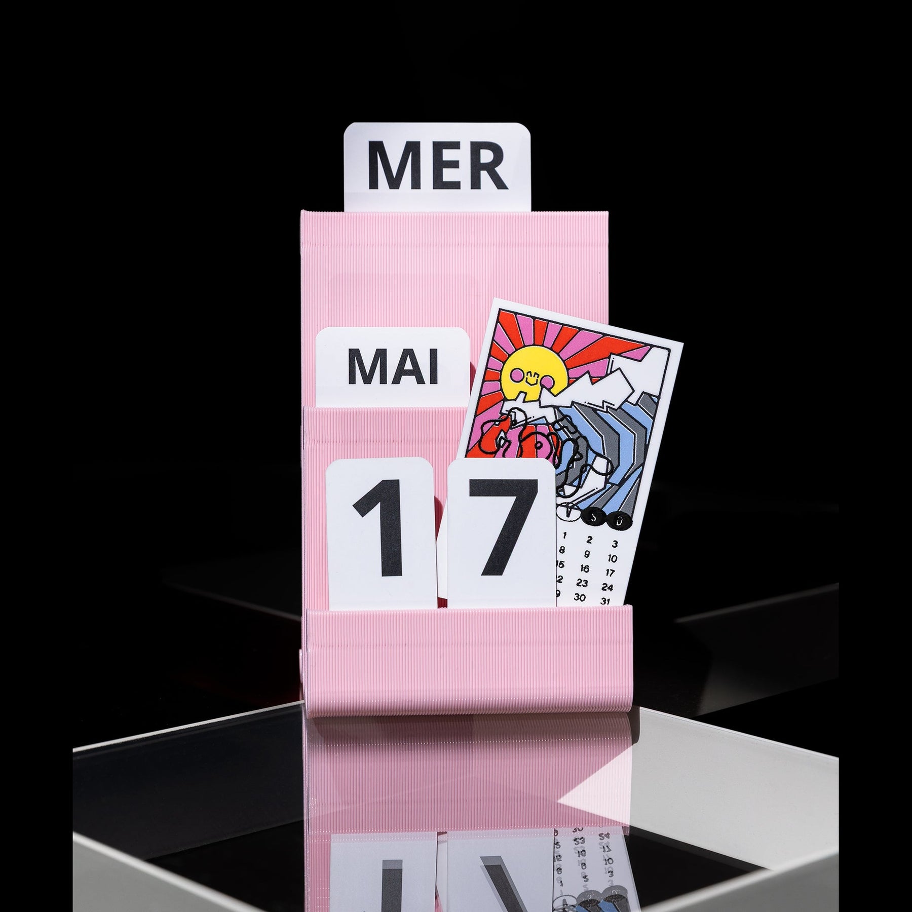 Joe is een eeuwigdurende kalender die ook gebruikt kan worden als kaart- of fotohouder. Hij wordt geleverd met een set dag-, maand- en cijferkaarten, allemaal gedrukt op karton.