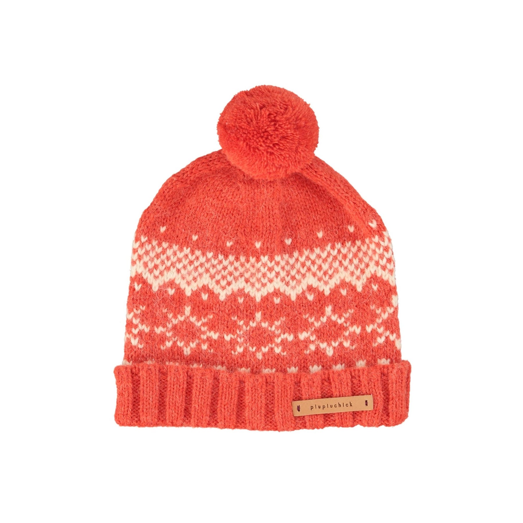 Piupiuchick Jacquard knitted Hat With Pompon Red