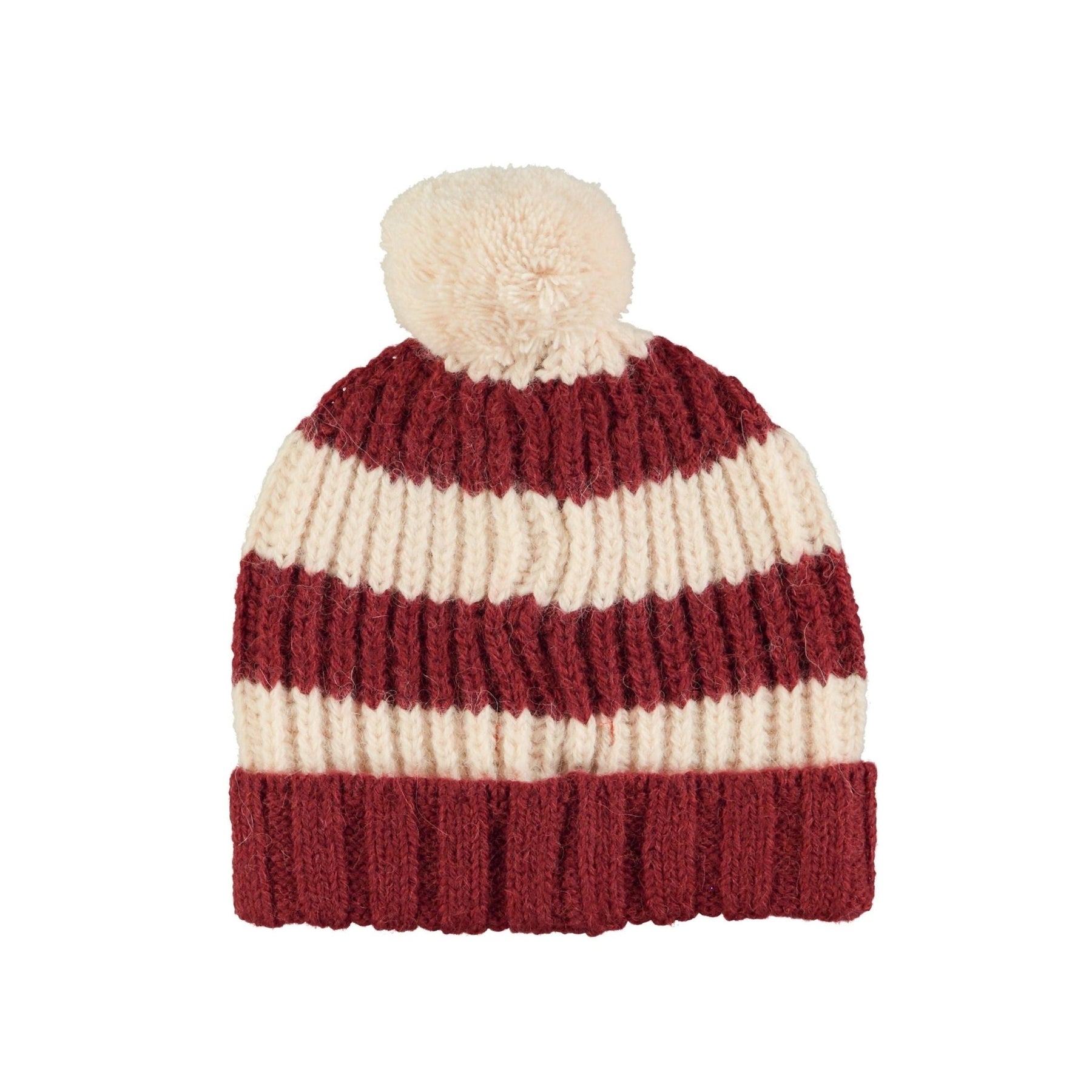 Piupiuchick Baby Knitted With Pompon Bordeaux & Light Pink Stripes