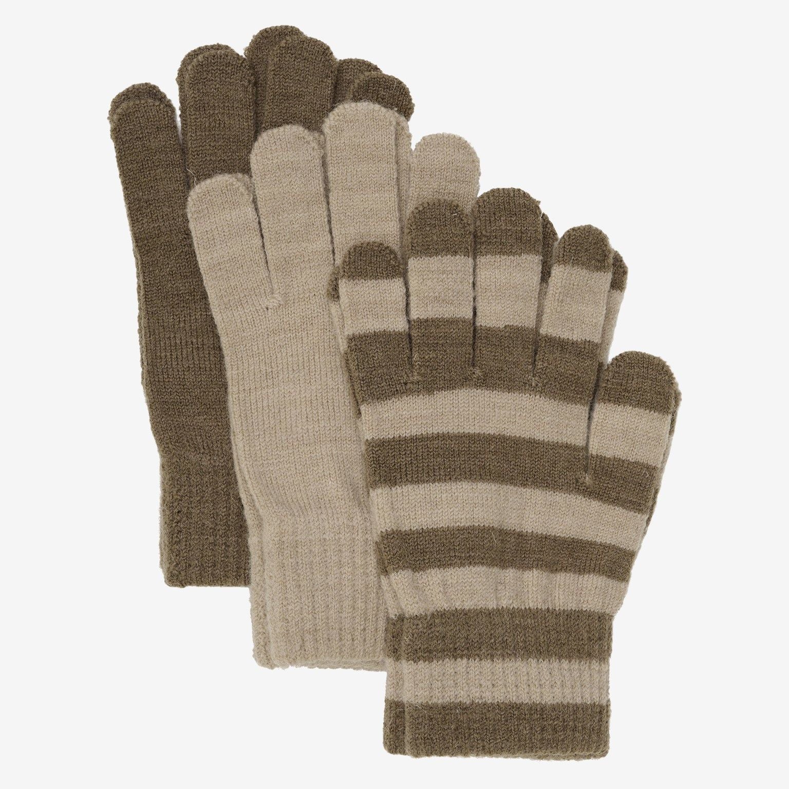 Deze 3-pack gebreide handschoenen van Minymo is perfect voor frisse en koude dagen. Ze zijn gemaakt van een zachte en rekbare wolmix, waardoor ze zowel warm als flexibel zijn. Dankzij de "magic" pasvorm sluiten ze mooi aan rond kleine handjes en groeien ze een stukje mee met je kind.