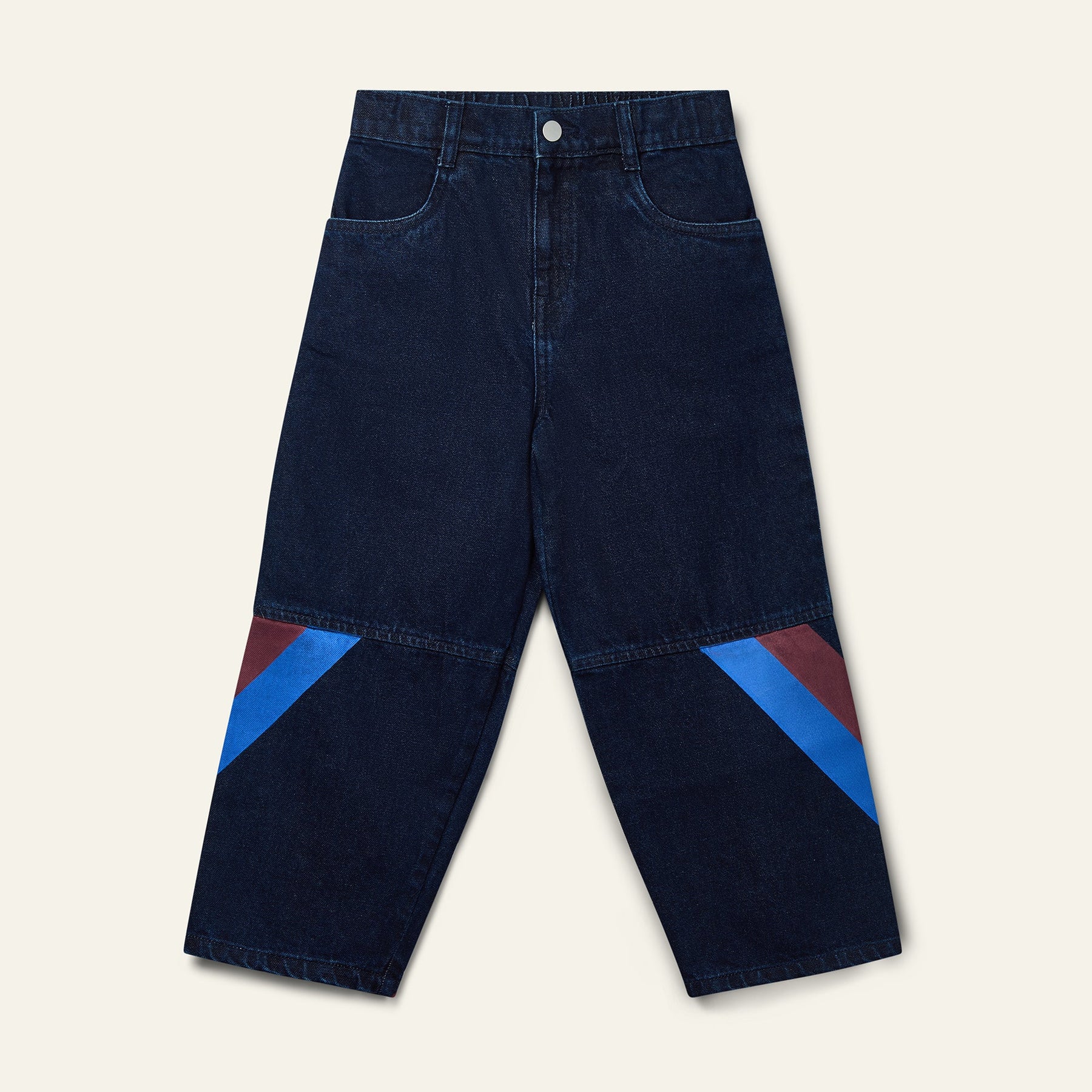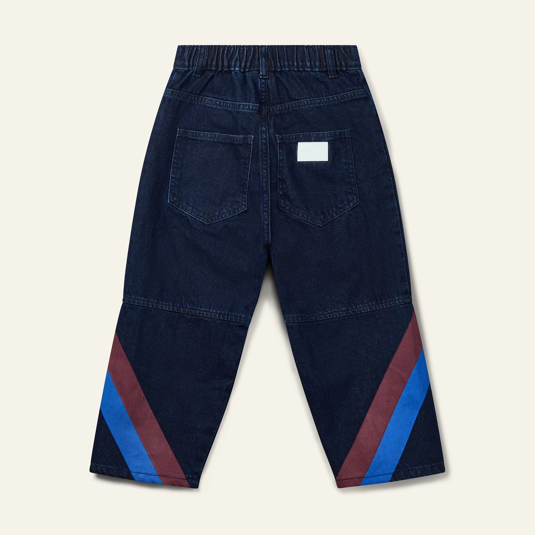 Deze donkere, zachte, relaxed-fit en taps toelopende jeans is gemaakt om te bewegen! Ontworpen voor comfort en gemaakt om mee te groeien met kinderen dankzij de verborgen verstelbare tailleband. Met diepe gestreepte opgestikte zakken op de achterkant, perfect om kleine schatten in op te bergen!