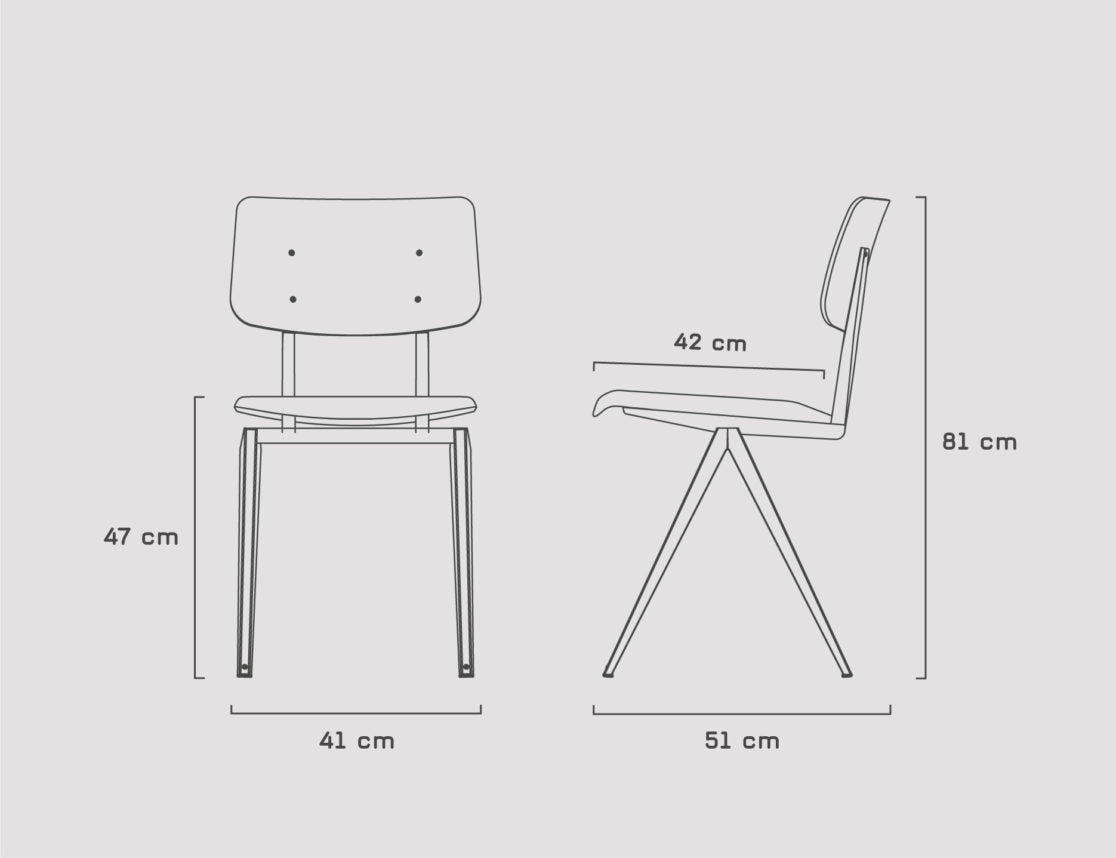 ✔︎ Iconisch design — originele S16 uit de jaren '60, gemaakt met de originele mallen ✔︎ Frame — gevouwen gepoedercoat plaatstaal in beigerood ✔︎ Rugsteun — pantserhout (kunsthars plywood) in bruin ✔︎ Zitting — gestoffeerd in Piquet Brown 15, extra zitcomfort ✔︎ Afmetingen — H 81 x B 41 x D 51 cm, zithoogte 47 cm, zitdiepte 42 cm ✔︎ Levering — volledig gemonteerd ✔︎ Garantie — 2 jaar