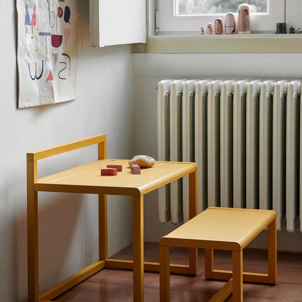 Ferm Living's Little Architect serie is voorzien van een tafel, stoelen, een bank en een bureau in vijf verschillende kleuren die bij elkaar passen, zodat je ze allemaal bij elkaar kan combineren. Het meubilair is eenvoudig, modern design en is gemaakt op kinderhoogte om hun creativiteit te ontplooien. The Little Architect Bench is gemaakt van essenfineer en wordt geleverd in subtiele kleuren. Maak een kleurenpalet en mix en match de meubels bij mekaar.