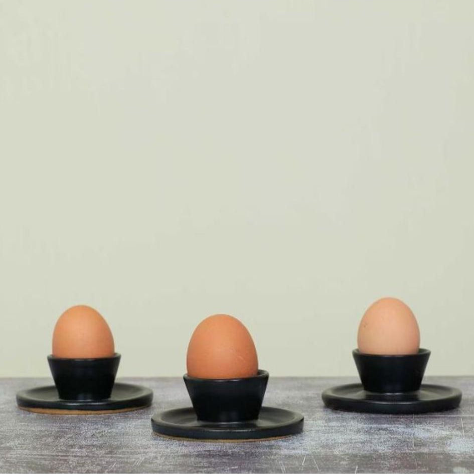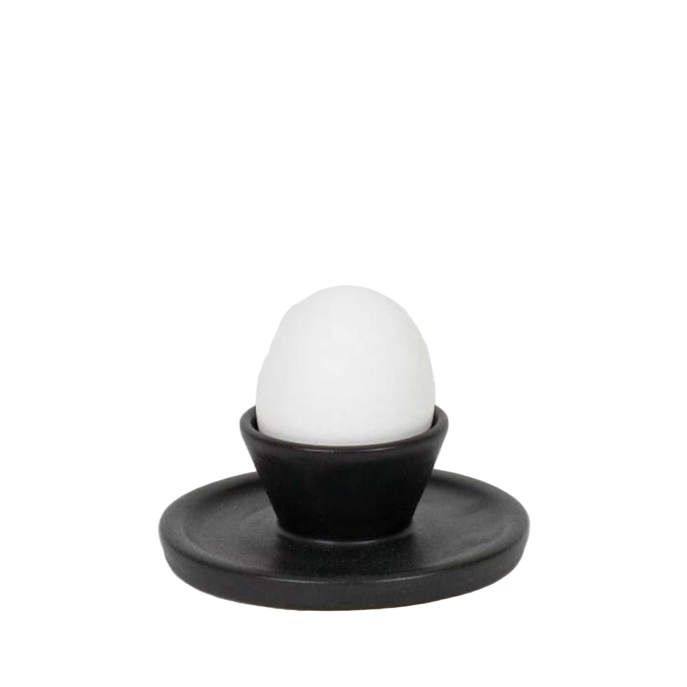 Een eierdopje van duurzaam steengoed met een mat zwart glazuur.