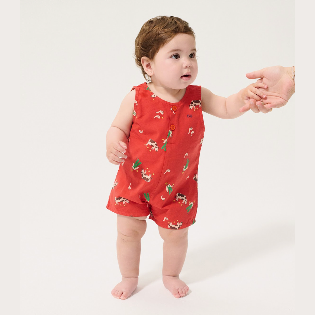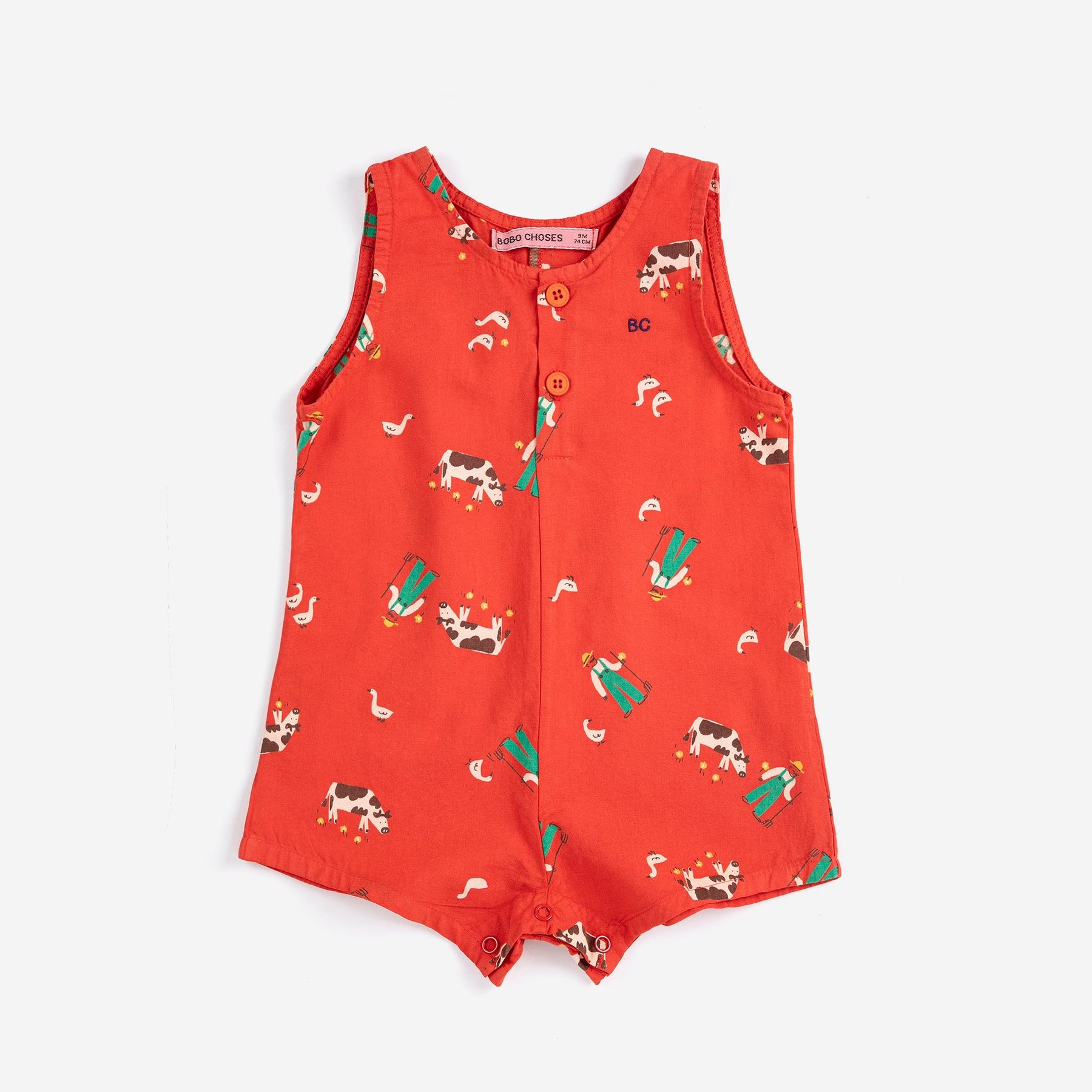 Leuke one-piece in rood met boerderijdieren op van Bobo Choses.