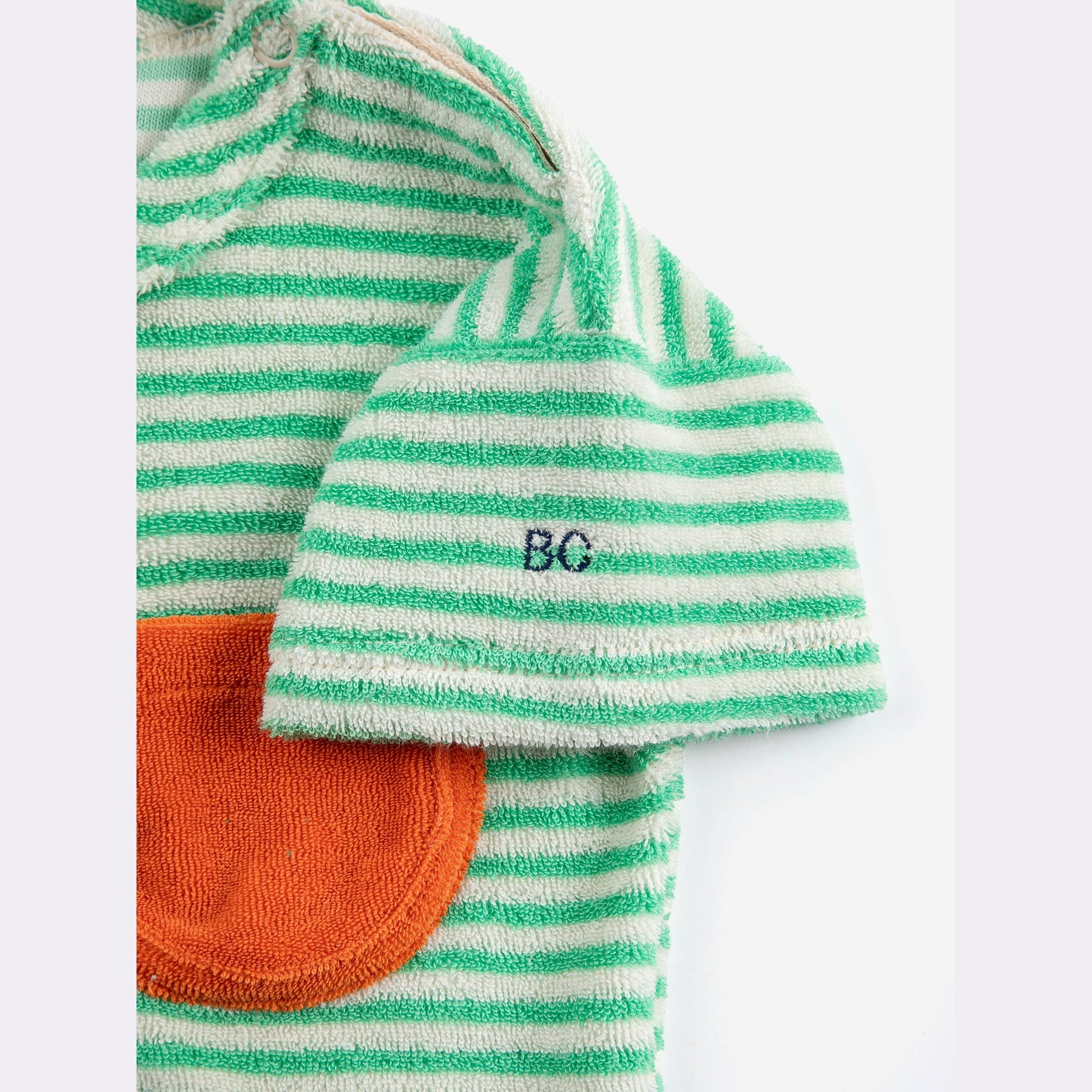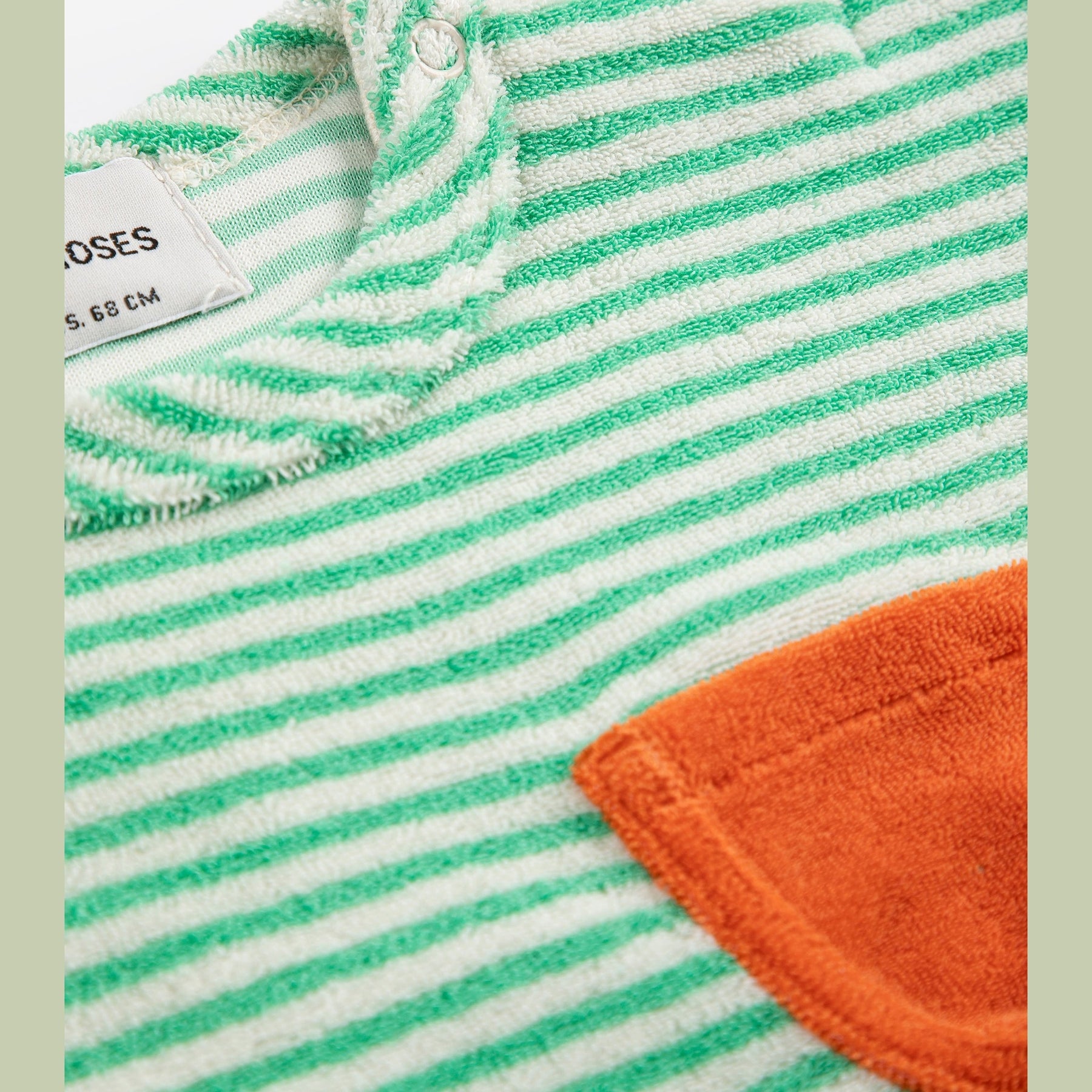 Schattige terry t-shirt met groen zakje op borst van Bobo Choses.