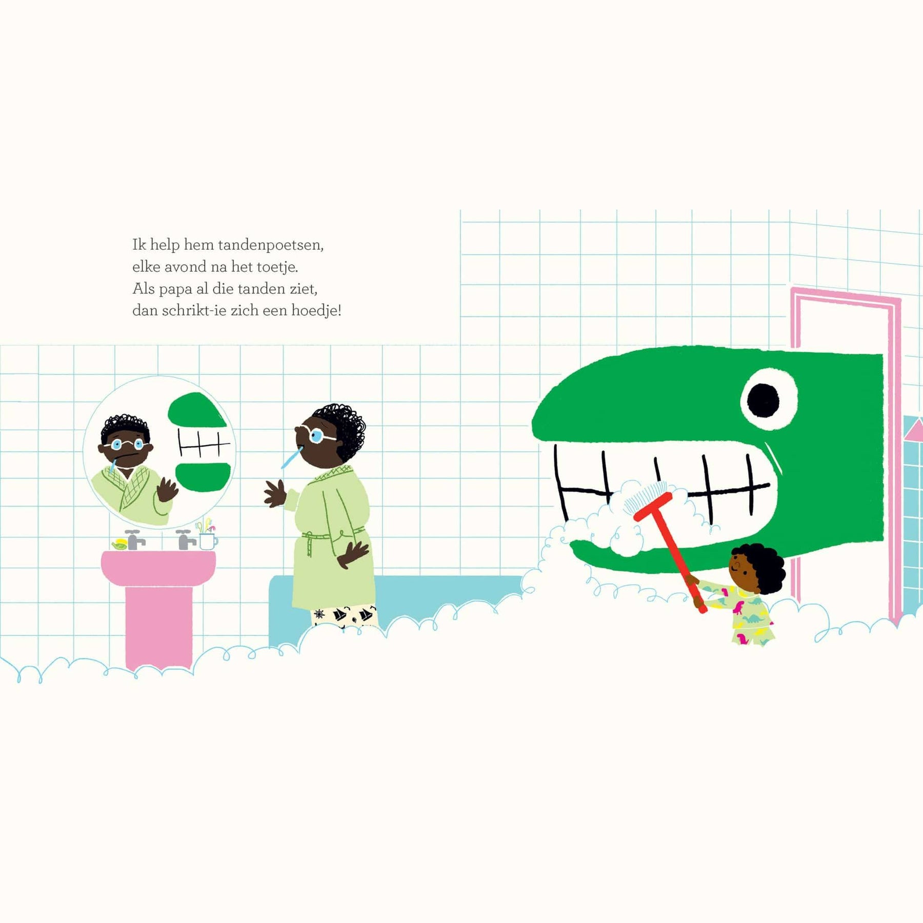Een klein meisje droomt ervan om haar eigen huisdier te hebben. Maar welk dier zou het beste gezelschap zijn? Een muis is te klein, een kat te gewoon, en een vis… te nat! Terwijl ze met haar speelgoeddino speelt, krijgt ze een briljant idee. Wat dacht je van een echte, levende dino- saurus? Ze zou erop naar school kunnen rijden, hij zou veel eten nodig hebben, een zwembad om uit te drinken, en een speciaal dino-luik om vrij in en uit te kunnen gaan. Na een dag vol fantaseren, gaat het meisje met haar plastic dino naar bed – en terwijl ze in slaap valt, staat de dino uit haar dromen in de tuin met zijn kop door het slaapkamerraam. Haar droom komt uit!