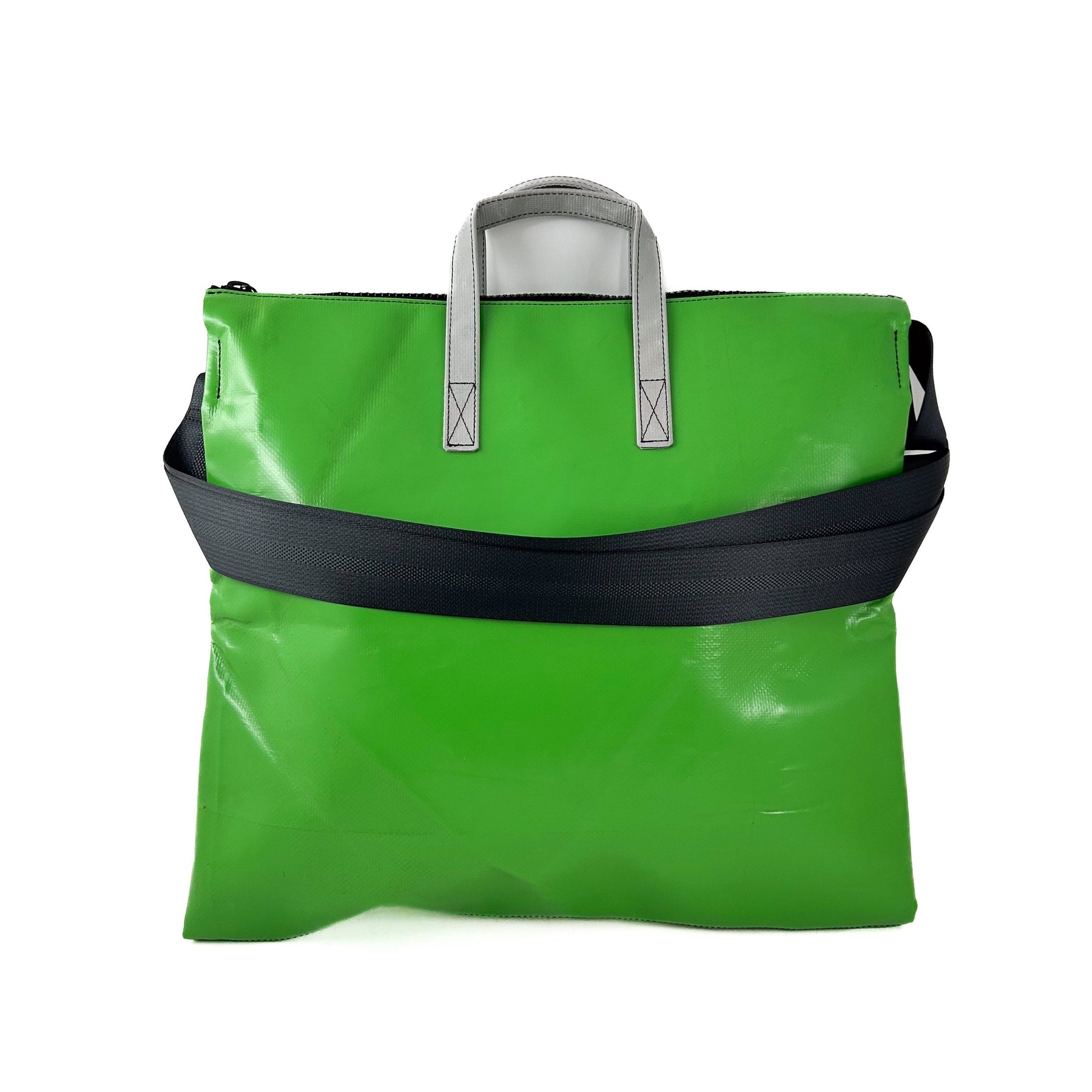 -made from used truck tarpaulins, recycled PET bottles, and reused seat belts