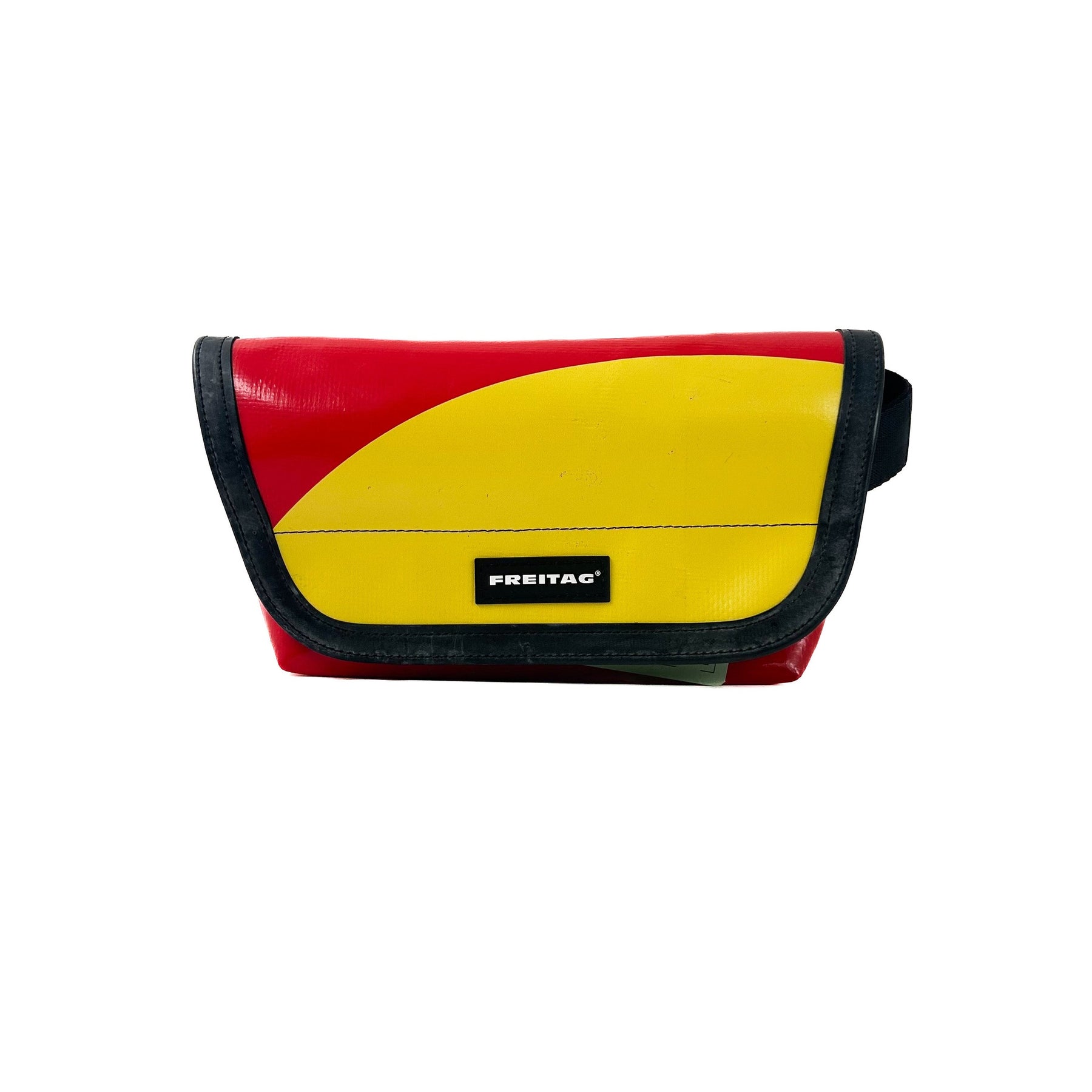 Dit heup- en borst tasje van FREITAG gemaakt uit gerecycleerd vrachtwagendekzeil is uniek. Er zijn er geen twee zoals deze.  Kijk hier in deze video wat de F153 JAMIE  kan.