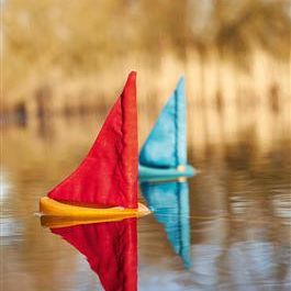 Met deze bootjes wordt elke plas een oceaan. De kleine zeilbootjes zijn voorzien van een koord zodat ze veilig over het water kunnen worden geleid.