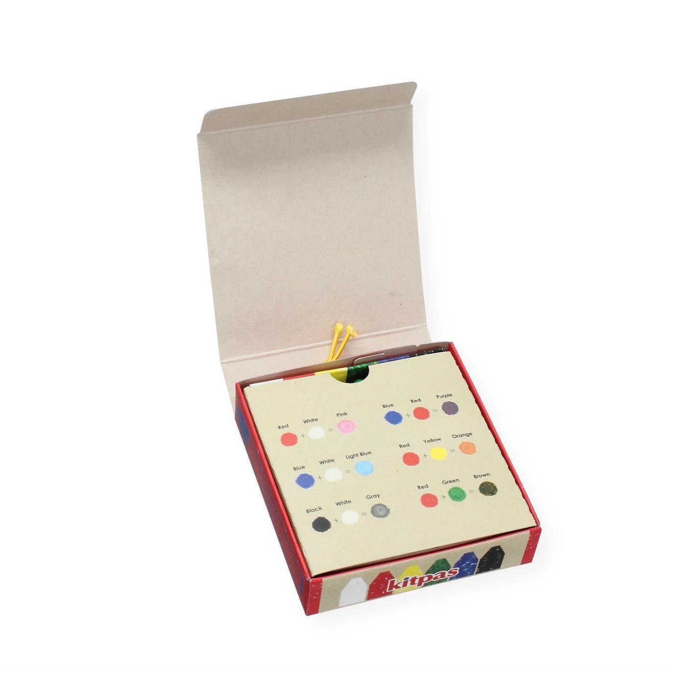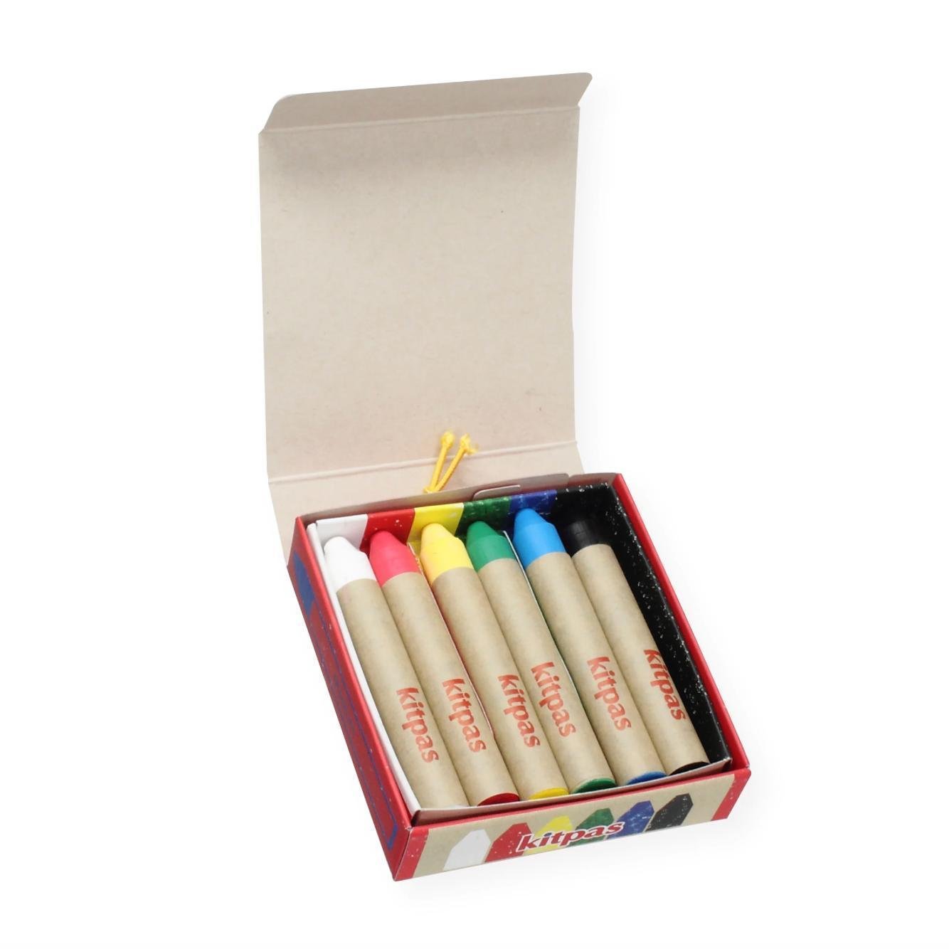 De krijtjes zijn gemaakt van rijstwax olie en Kleuren op papier, ramen, glas, whiteboards en spiegels. Eenvoudig te verwijderen met een natte doek (niet van papier!). Met een klein beetje water erbij kan je ook verven met de krijtjes. Op het doosje vind je kleursuggesties om te mengen.