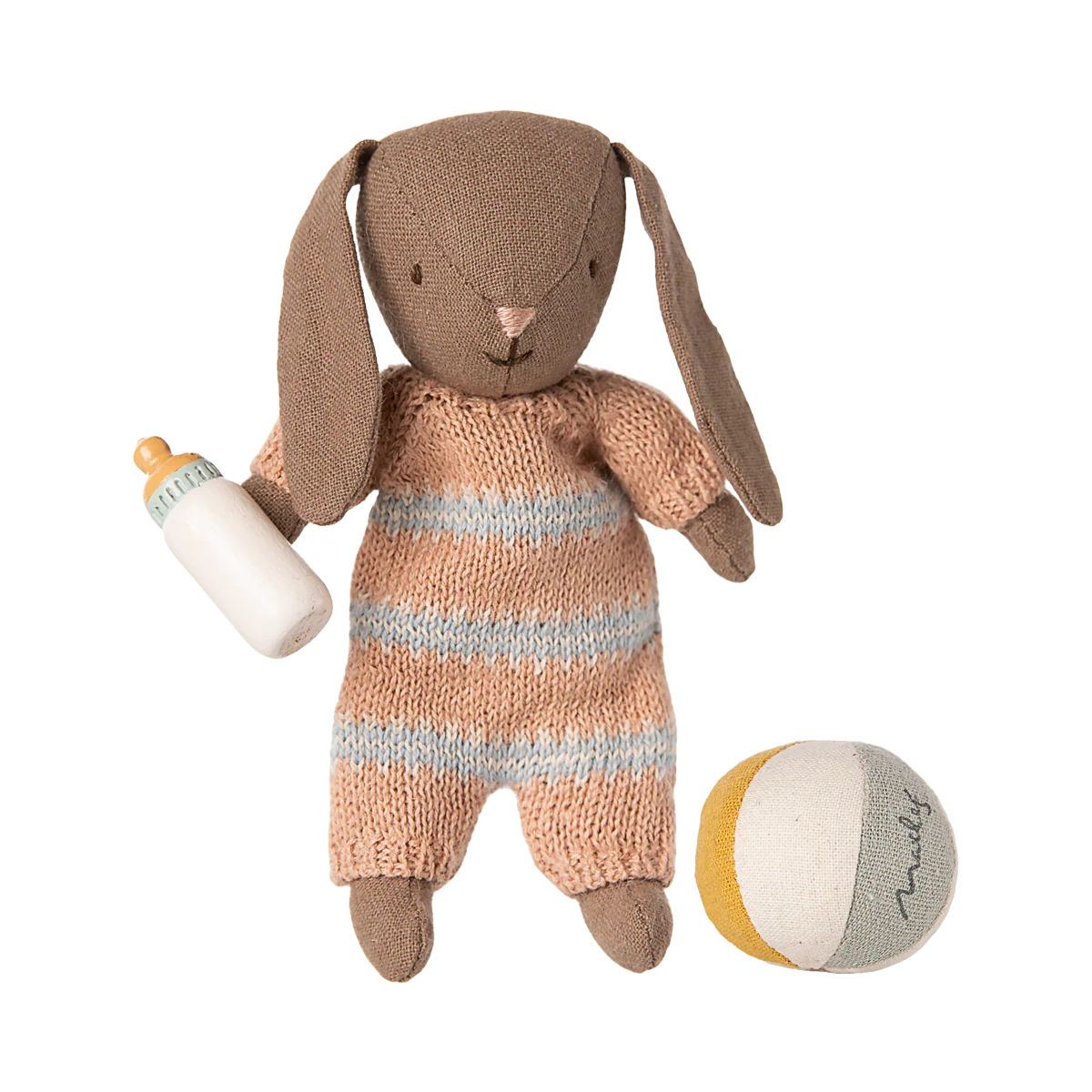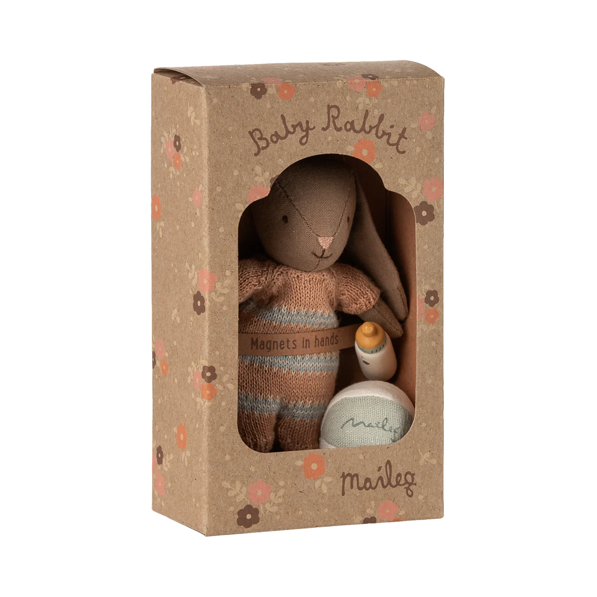 De perfecte cadeauset om urenlang verhalen te vertellen. De set bevat een kleine bal, een zacht konijntje in microformaat met magneten in de handjes om de babyfles vast te houden. Alles past mooi bij elkaar en het is een geweldige start van elke konijnenverzameling.