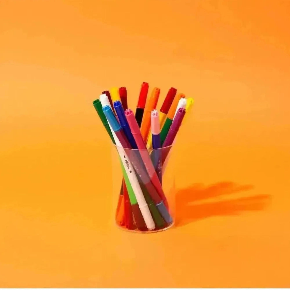 Doos met 16 magische viltstiften in heldere, fluorescerende kleuren.