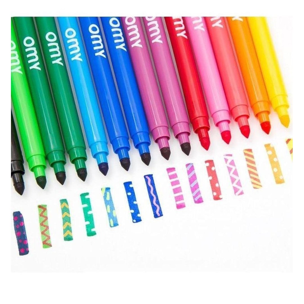 Deze stiften met dubbele punt (fijn en breed) zijn onmisbaar in de OMY-kleurboeken en kunnen worden uitgewist of van kleur veranderd met de 2 meegeleverde gommen.