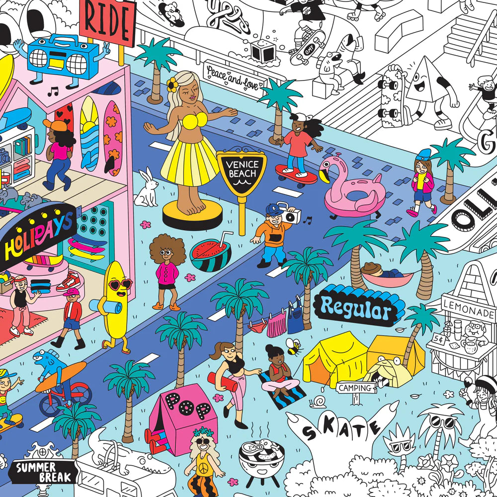 Deze extra grote poster van 70 × 100 cm staat vol grappige en gedetailleerde illustraties, perfect om alleen of samen in te kleuren. Kinderen kunnen hun creativiteit helemaal kwijt en urenlang kleurplezier beleven – op de vloer, tafel of aan de muur.