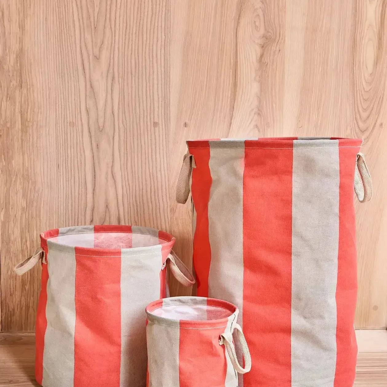 Kara opbergmand groot 54xØ38 cm van OYOY combineert functie en design met zijn gestreepte patroon en robuuste materiaal. Gemaakt van polyester, katoen, polyamide en viscose met een PE-coating voor extra duurzaamheid. Perfect voor het organiseren van alles van dekens tot speelgoed, terwijl het een stijlvol detail toevoegt aan de kamer.