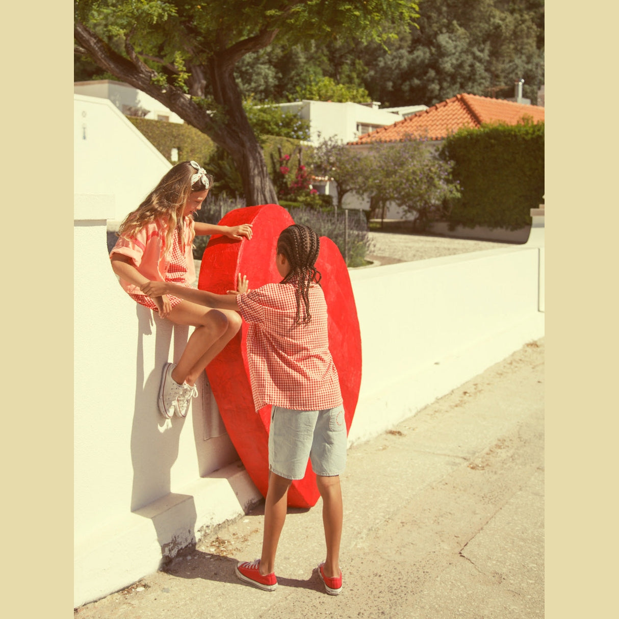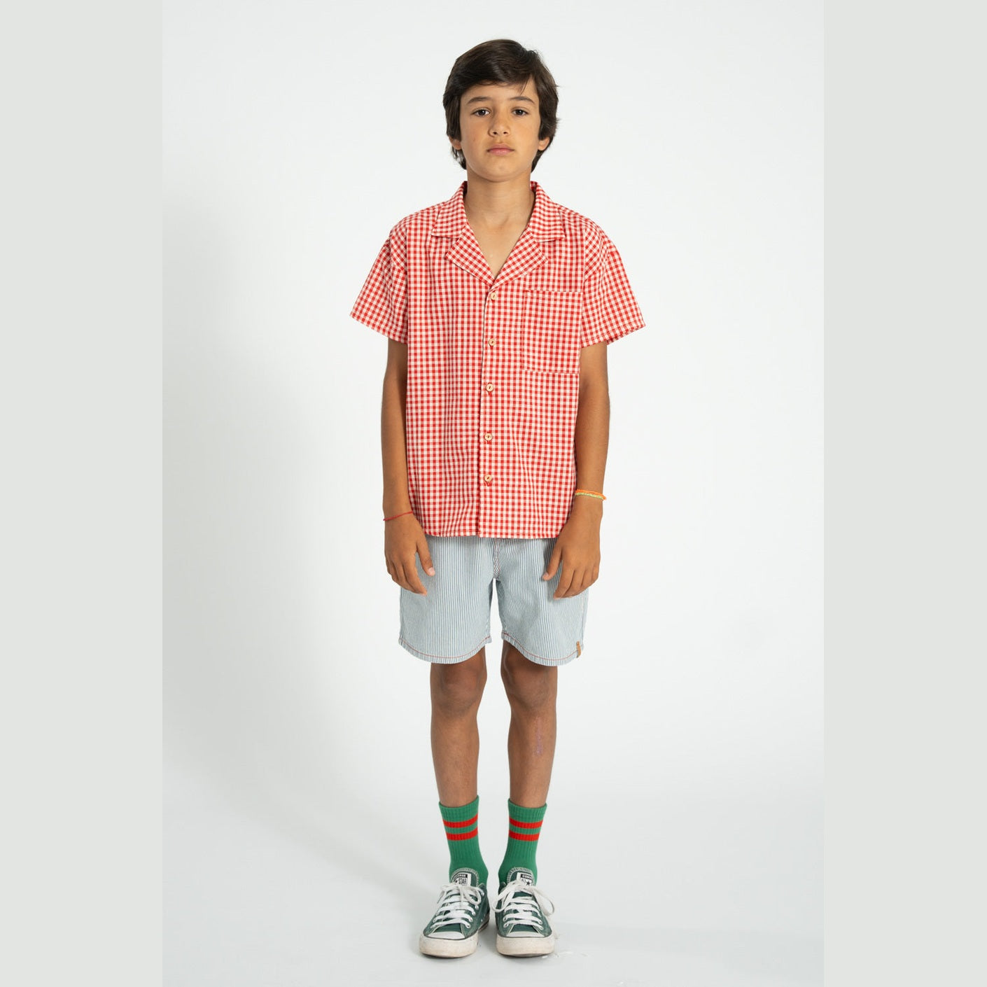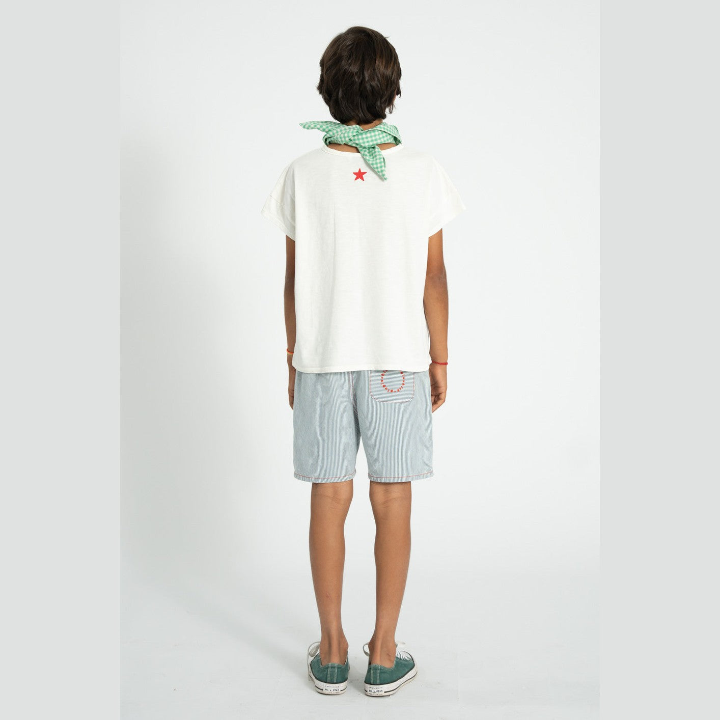 Piupiuchick Boy shorts Ecru With Indigo Stripes