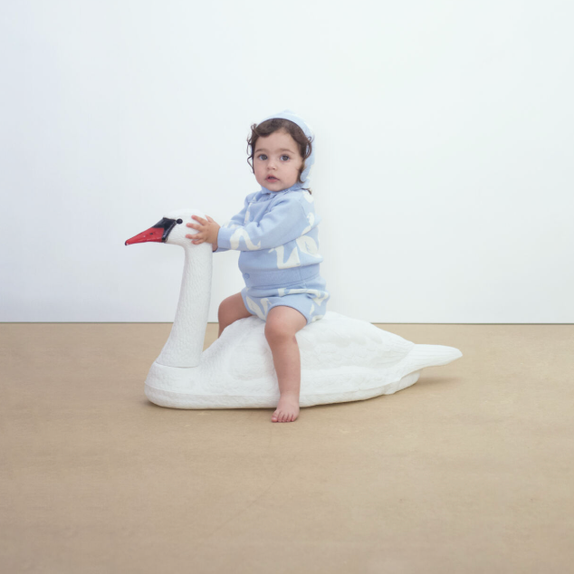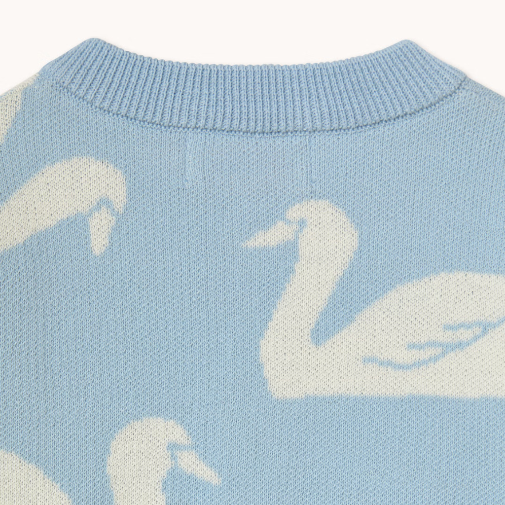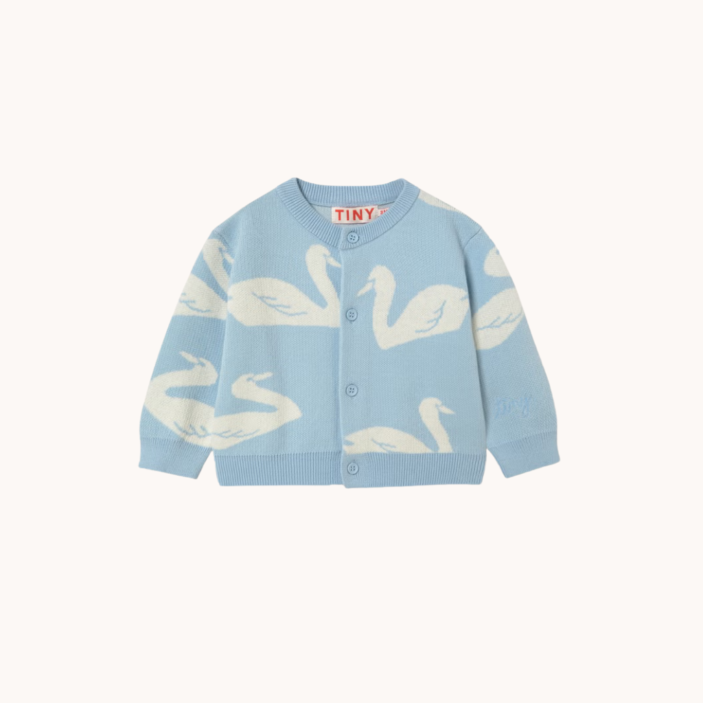 Prachtige lichtblauwe cardigan met zwanen van tiny cottons.