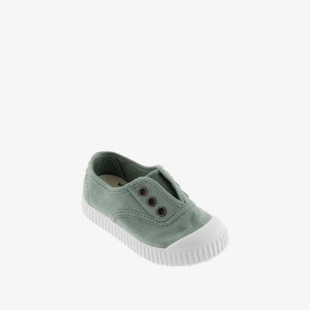 Instapsneakers van canvas voor kinderen, gemaakt van een unieke mix van gerecycled DREC® (Dyeable Recycled Eco Cotton) en milieuvriendelijk katoen dat in Spanje wordt geteeld, gesponnen en geweven.